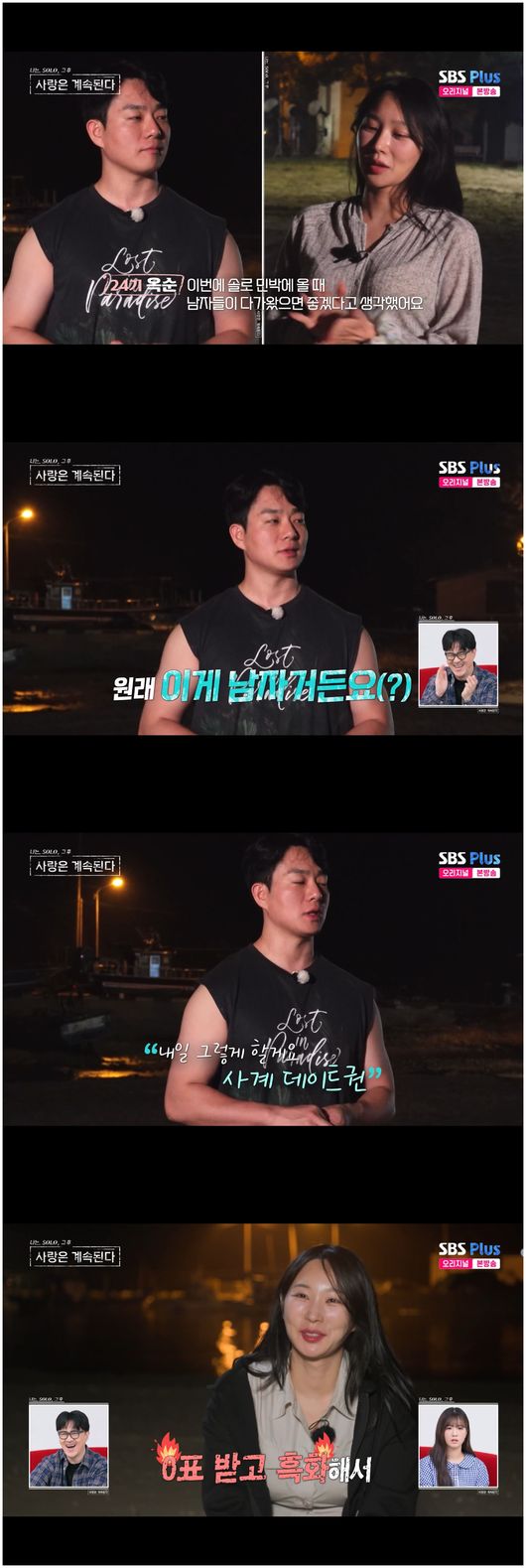 [OSEN=오세진기자]‘나는SOLO,그후사랑은계속된다’24기옥순은역시나진취적인여성이었다.11일방영한ENA,SBSPlus예능‘나는SOLO,그후사랑은계속된다’(이하‘나솔사계’)에서는첫데이트0표를받았던24기옥순이슈퍼데이트권을위해스스로움직였다.미스터권은“나에게누군가가호감이있으면쓸테지만,그런사람도없으면룰을깨고안쓰겠다”라며선언했다.23기옥순에게호감을분명히했지만23기옥순은단호히거절한상황이었다.26기순자는“내일내데이트권을쓰겠다”라며미스터권에게돌진했다.이에24기옥순은“오빠저한테데이트권안썼으면써주세요”라며미스터권에게제안했다.데프콘은“난그런생각이든다.24기옥순은남자가필요한건지,미스터권이필요한건지.24기영식이‘나솔사계’를그렇게재미있게보고있다고하지않냐”라며갸웃거렸다.미스터권은“저한테궁금함을표현하는분에게쓰겠다고얘기를했기때문에슈퍼데이트권을쓰겠다”라며24기옥순에게쓰기로결정했다.24기옥순은“0표받고흑화해서요.누구나0표받기싫고,인기없는것보단인기있는게낫지않냐.미스터제갈님은내게썼고,미스터권이랑대화해보고싶었는데못했으니까그걸이용해서데이트를하면되겠다싶었다”라며본심을드러냈다./[email protected][사진출처]ENA,SBSPlus예능‘나는SOLO,그후사랑은계속된다’Copyright©OSEN.무단전재및재배포금지.