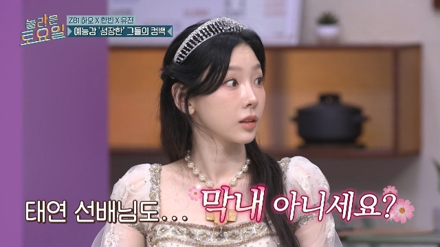 tvN‘놀라운토요일’캡처tvN‘놀라운토요일’캡처[뉴스엔서유나기자]제로베이스원한유진이놀라운사회생활을보여줬다.8월30일방송된tvN예능'놀라운토요일'(이하'놀토')381회에서는도레미들이제로베이스원장하오,성한빈,한유진과함께받쓰(받아쓰기)에도전했다.이날제로베이스원막내한유진은"태연선배님도막내시지않냐"고말해도레미모두를당황시켰다.태연조차놀라"예?저요?"라며되묻는가운데,진짜막내피오는웃긴지말없이웃음만지었다.박나래와넉살,신동엽은"얘사회생활잘한다.무섭다","어린친구가너무한거아니냐","이안에어르신한세분들어있네"라고한마디씩했고태연보다2살어린키는어이없다는표정을감추지못했다.이런반응에태연은기특함을담아박수를치더니"오빠들이랑늘즐겁게녹화하고있다"고너스레떨었다.뉴스엔서유나stranger77@기사제보및보도자료[email protected]ⓒ뉴스엔.무단전재&재배포금지Copyright©뉴스엔.무단전재및재배포금지.