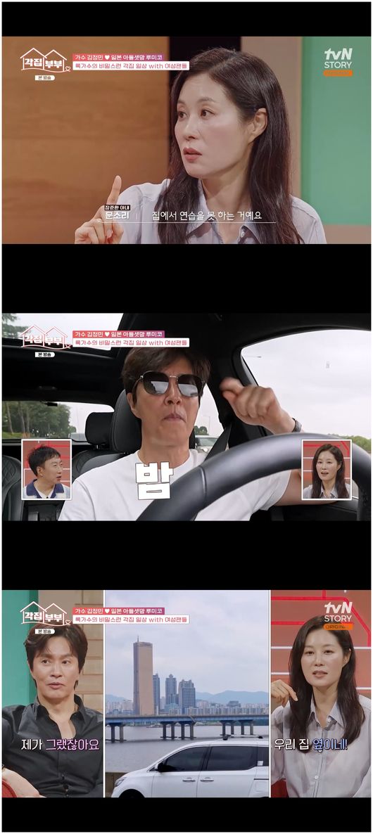 [OSEN=오세진기자]‘각집부부’김정민이문소리의새로운남사친후보로등극했다.4일첫방송한tvNSTORY‘각집부부’에서는기러기부부로살아가고있는김정민,루미코부부가공개됐다.김정민은“사실내가꿈꾸던결혼생활은아니다.기러기아빠는생각지도못했다”라며침울해했고,루미코는“첫째아들이랑둘째아들이축구를잘해서일본에서뛰게됐다.그래서일본에가게됐다.이렇게기러기생활이시작됐다”라고밝혔다.김정민은홀로살면서청소,운동,커피마시기,낮잠자기등소소한취미와생활을보냈다.그러면서도가족단체메시지방에틈틈이자신의일상을전했고,아들의경기를라이브영상으로전해보며안타까움을표현하기도했다.김정민은차를몰고나갔다.한강변이보이는아파트를본문소리는“김정민집이우리집옆이네?”라며이웃사촌이란점에반가워했다.김정민은차안에서노래연습겸드라이브를즐겼다.문소리는“저도저랬다.‘정년이’드라마를찍을때판소리연습을해야하는데,집에서너무크게노래를할수없어서나와서차안에서부르곤했다”라며공감했다.이에박명수는“문소리랑김정민이남사친여사친을하면되겠다”라며서로를친구로추천했다./[email protected][사진출처]tvNSTORY‘각집부부’Copyright©OSEN.무단전재및재배포금지.