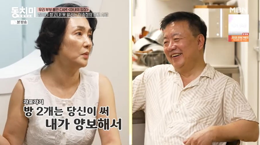 [텐아시아=조나연기자]사진=MBN'속풀이쇼동치미'배우이효정김미란부부가현실적인부부갈등을털어놨다.아이들이모두독립한뒤둘만남은집에서하루가멀다하고다툰다는속내를고백해공감을안겼다.30일방송된MBN예능'속풀이쇼동치미'에서는이효정김미란부부가출연해최근이사한새로운집에서의일상을공개하는모습이그려졌다.이날방송에서이효정은"온가족이북적북적함께살던60평대집에서30평대로옮겼다.아이들이독립하면서피치못하게부부둘만남게됐다"고밝혔다.사진=MBN'속풀이쇼동치미'이어"예전에는잔소리가투정처럼들렸는데,요즘은자격지심때문인지매일싸우는것같다"고고백했다.아내김미란씨역시"남편과정말많이싸운다.나이가드니까같이있는시간이많아져서더그런것같다"며솔직한속내를드러냈다.두사람은갈빗집도함께운영하며24시간붙어있다고.한공간에서아내는카운터,남편은주방일을배웠지만서로대화는거의오고가지못했다.사진=MBN'속풀이쇼동치미'또한중고물품을모으는걸좋아하는남편에게아내는"지금주말에만쓰는막내딸방까지점령하고있다.3개정도는물건을버릴수있냐"고말했고,남편은"알아서한다.간섭하지마라"며티격태격했다.결국아내는"너무힘들어서아이들한테도이혼해야할것같다고말한적이있다"고고백해충격을안겼다.조나연텐아시아기자[email protected]©텐아시아.무단전재및재배포금지.