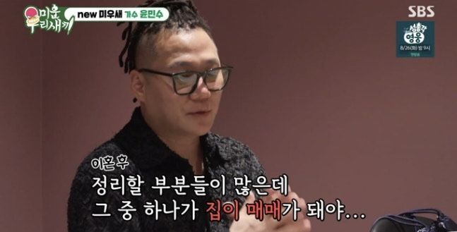 [서울=뉴시스]윤민수.(사진=SBSTV‘미우새'캡처)[email protected]*재판매및DB금지[서울=뉴시스]이재훈기자=가수윤민수가이혼후에도전아내와한집살이하는이유를털어놨다.윤민수는24일방송된SBSTV예능물'미운우리새끼'('미우새')에서"정리할부분이많은데그중하나가집"이라고밝혔다."집이매매돼야정리되는부분이있다.그러다보니아직같이지내게됐다"는것이다.윤민수는현관기준양쪽으로자신의방과전처방이배치돼서로분리된구조라고설명했다."세대가분리된느낌이다.집에들어가면(전아내가있는)오른쪽공간으로갈이유가없다"고부연했다.전안내와는집안에서의사소통은꼭필요한얘기만한다며내용은대부분아들윤후관련된얘기라고했다.윤민수는그러면서"집안에서(전아내와)마주쳐도,한두해산게아니고20년가까이살아서친구같다"고여겼다.윤민수는아들,전처와얼마전엔같이가족여행도다녀왔다고했다.이어"이혼에대해후한테특별한얘기는안했다.'이혼할건데어떻게생각하냐'고물었다.'그건엄마아빠인생이니까'라고쿨하게반응하더라"라고전했다.윤민수는2006년김민지씨와결혼했다.두사람은같은해11월아들윤후를낳았다.윤민수는아들과함께MBCTV예능프로그램'아빠!어디가?'에출연해주목받았다.두부부는결혼18년만인작년이혼사실을알렸다☞공감언론뉴시스[email protected]©뉴시스.무단전재및재배포금지.