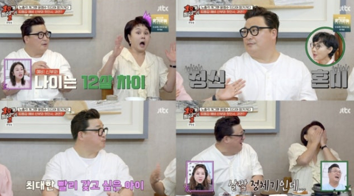 ‘1호가될순없어2’.사진|JTBC개그맨윤정수가12살연하예비신부와2세계획을공개했다.지난21일방송된JTBC예능프로그램‘1호가될순없어2’에서는오는11월께결혼예정인윤정수가출연했다.윤정수는최근12살여하의필라테스강사와혼인신고를하고부부가됐다.윤정수는“10년전부터알던사이였다”면서“그때도마음에들어서애프터를신청했지만거절당했다.그러다2년간격으로연락을주고받다가‘이럴거면식사나하자’고해서만난게7개월전”이라고밝혔다.윤정수의예비신부사진을본선배들은“너무예쁘다”,“참하고인상이좋다”며덕담을아끼지않았다.윤정수의2세에대한궁금증도이어졌다.윤정수는“2세계획있다.병원도갔다.(정자가)정체기라고하더라”고말했고,이경실은“사랑하는여인을만나면활발해진다”며응원을건넸다.[김소연스타투데이기자]Copyright©스타투데이.무단전재,재배포및AI학습이용금지