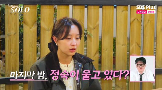 [OSEN=박하영기자]‘나는SOLO’27기정숙이예고에서눈물을흘려눈길을끌었다.20일방송된ENA와SBSPlus의리얼데이팅프로그램‘나는SOLO’(이하‘나는솔로’)에서는27기영수가정숙,영자와마지막데이트하는모습이그려졌다.이날정숙과영자의선택으로2:1데이트를하게된영수는어색한분위기속식당으로안내했다.그리고영자가화장실로자리를비운사이,영수는“지금내가긴장이너무많이돼서”라며“영자도이럴줄알았을거다.나는네가이번선택에서나를할줄몰랐다.마지막까지도남자선택아니면안되는데너무초조했다”라고털어놨다.또영수는정숙이“상철이말하지않고행동으로보여주면서정리가깔끔하게됐다”고하자“너한테그런내용을물어보고싶은게하나있다.나중에일대일로대화하겠다”라고예고해MC들의야유를받았다.송해나는“대놓고앞에서비밀이야기하나해줄게아니냐”라고했고,데프콘은“마음의70%가더갔다”라고반응했다.영수의발언에결국어색해진분위기.이에대해영수는“식사자리는좀포기해야되는시간이라고생각했다.저는정했지만.막티내고그러면너무무례한것같아서다른상대방이소외감을느낄거같아서여기는식사하고그다음에일대일대화할때얘기하자였다”라고설명했다.한편,예고에서는정숙이갑자기눈물을흘리는모습이공개돼MC들을깜짝놀라게했다.이어그는영식과의대화에서눈물을보였고,인터뷰를통해“설렘이그렇게중요하다고생각하지않고지내왔는데막상겪어보니가장중요하더라”라고고백했다.이를들은데프콘은“상철얘기인가봐”라고경악했다.그리고영철은눈물흘리는정숙옆에앉아눈물을닦아주는모습을보이는등예상치못한장면들이그려져최종선택에더욱궁금증을높였다./mint1023/@osen.co.kr[사진]‘나는SOLO’방송화면캡처Copyright©OSEN.무단전재및재배포금지.