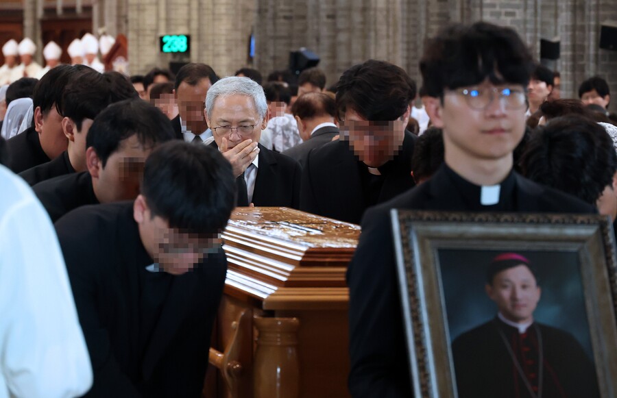 ▲제공|연합뉴스[스포티비뉴스=김현록기자]지난15일선종한유경촌주교의장례미사가18일오전명동대성당에서한국주교단과서울대교구사제단공동집전으로봉헌됐다.형유인촌전장관이동생의마지막길을지켰다.장례미사는한국천주교주교회의의장이용훈주교를비롯한주교들과사제,신자들이참석한가운데열렸다.유주교의형이며역시천주교신자인유인촌전문화체육관광부장관도참석했다.천주교서울대교구장정순택대주교는"그분은교회가사회의아픔과소외된이웃들에게더가까이다가서야한다는사실을온몸으로증언하셨다"며악자의편에서헌신했던고인을기렸다.1962년서울에서태어난유주교는서울가톨릭대학교를졸업하고1992년1월서울대교구에서사제품을받았다.독일프랑크푸르트상트게오르겐대학교에서신학박사학위를취득했으며서울대교구목5동본당보좌신부,가톨릭대학교(대신학교)교수,서울대교구통합사목연구소장,명일동본당주임신부,서울대교구보좌주교등을지냈다.2013년12월30일프란치스코교황에의해서울대교구보좌주교로임명됐고이듬해2월정식으로주교품을받아서울대교구사회사목담당겸동서울지역교구장대리로활동했다.▲제공|연합뉴스<저작권자ⓒSPOTVNEWS.무단전재및재배포금지>Copyright©스포티비뉴스.무단전재및재배포금지.