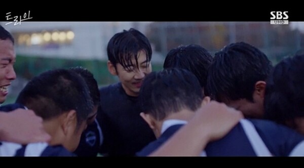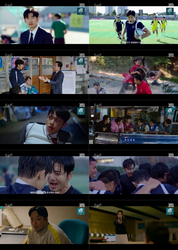 아이즈ize최재욱기자사진='트라이'방송영상캡처'트라이:우리는기적이된다'윤계상과한양체고럭비부가'원팀'이되며안방극장에감동의드라마를쓰며자체최고시청률을기록했다.지난16일방송된SBS금토드라마'트라이:우리는기적이된다'(극본임진아,연출장영석,이하'트라이')8화에서는주가람(윤계상)과한양체고럭비부가문웅(김단)의태클트라우마를함께극복하며뭉클한감동을선사했다.하지만럭비부폐부추진세력인방흥남(정순원)에게중증근무력증을들킬위기에처하며궁금증을증폭시켰다.이에'트라이'8화는최고시청률8.8%,수도권7.3%,전국6.8%를기록하며,또다시기적의자체최고시청률경신을이어가는대기록을세웠다.(닐슨코리아)사진='트라이'방송영상캡처웅은대통령기대상고와의경기중"태클못하겠습니다"라고밝혔고,가람과한양체고럭비부는태클을못하겠다는웅의문제를팀이채워주는전략을세웠다.하지만한양체고는경기후반부에체력부담이더해지며아쉽게2점차로대상고에패했고,울분을토했다.웅은자신때문이라며울먹였고,럭비부원들은웅을격려하며"졌어도이긴기분입니다"라고소리쳐울컥함을선사했다.대통령기경기를본연희대럭비부감독송현종(강신일)이작성한스카우팅리포트가럭비계에서주목을받고스카우터참관문의가이어지자,교감성종만(김민상)은럭비부를지원하며태세전환해긴장감을높였다.가람은인생을쉽게사는것같다는에어로빅감독흥남의말에"나는어느것하나쉽게가진적없어.특히럭비는더"라며울컥했다.한양체고럭비부는웅이태클트라우마를극복할수있도록자체훈련에돌입했다.럭비부원들은웅을위해소를데려오는가하면,해병대특훈까지돌입해웃음을자아냈다.이가운데,웅이학교폭력가해자라는폭로글이올라와충격을자아냈다.그러나성준과럭비부는웅을향한신뢰를드러냈다.웅은불량학생이아버지를괴롭히려고하자이를막기위해그를몸으로밀었고,그가다치고만것.사진='트라이'방송영상캡처럭비부원들은웅을지키기위해폭로글을올린불량학생들을찾아갔다.주장윤성준(김요한)은불량학생들의비아냥속에서도"우리는웅이가필요해.네거짓말때문에선수를잃을순없다"면서무릎까지꿇어게시글을삭제하는데성공했다.학교에홀로남은웅은입스훈련중인배이지(임세미)에게자신의고민을털어놨고,이지는"너는아직입스올단계아니야.쓸데없는걱정하지마"라며웅의마음을위로했다.가람은위험을무릅쓰며불량학생을찾아간럭비부원들을혼냈다.이어"정작감독인난아무것도하지않았으니벌을받아야겠지"라며자신에게태클을걸라고도발했다.사실이는웅의태클연습을위한가람의계획이었다.가람은웅에게"네가무섭다고태클을피하면동료들이다친다.그래도괜찮냐"라며다그쳤고,웅은"그러다가제가또사람을또다치게하면요!"라고그동안말하지못했던두려움을토로했다.결국가람은웅에게태클을못하면선수생활은끝이라는최후통첩을던졌다.웅은자신을데리러온아버지까지뿌리치며마침내가람에게태클을거는데성공해짜릿한반전을선사했다.가람은"축하한다드디어럭비선수된거"라며웅을향한응원을전했고,가람과럭비부원들은모두서로를어깨동무를하고뭉클한원팀케미를보여줬다.하지만극말미,가람에게위기가찾아왔다.중증근무력증증세가더욱악화된것.심지어흥남이무언가를눈치챈듯아무도없는가람의방에서그를기다리고있었고,두사람이대면하며긴장감을높였다.사진='트라이'방송영상캡처한편,사격부에도먹구름이드리워졌다.사격부에배정된대한체대수시입학TO는단한명.사격부감독전낙균은사격부성적1등인서우진(박정연)이아니라부교육감의딸나설현(성지영)을학교추천으로입학시키려는계획을세웠다.우진은낙균이설현의대한체대추천서를썼다는사실을알고항의했고,낙균은뻔뻔하게우진을협박했다.급기야낙균은우진을밀어넘어뜨렸고,우진이장식장에머리를부딪히며쓰러져긴장감을자아냈다.이어사격부실에들어온이지는낙균에게"떨어지라고!"라고소리쳤지만,낙균이아랑곳하지않자낙균을향해총을겨눴다.이어"우진에게서떨어져"라는이지의목소리에이어총성이울리며8화가종료돼다음화에대한궁금증을고조시켰다.SBS금토드라마'트라이'는예측불허괴짜감독주가람과만년꼴찌한양체고럭비부가전국체전우승을향해질주하는코믹성장스포츠드라마로매주금,토밤9시50분에방송된다.Copyright©ize&ize.co.kr,무단전재및재배포금지
