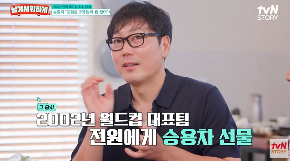 [TV리포트=노은하기자]전축구선수송종국이'2002년월드컵'4강신화이후받은포상과혜택을공개했다.지난13일방송된tvNSTORY'영자와세리의남겨서뭐하게'에출연한송종국은월드컵당시포상금과다양한혜택에대해솔직하게털어놨다.이날이영자는'2002월드컵'을떠올리며"혜택이많지않았냐.포상금은없었나"라고궁금해했다.이에송종국은"원래16강에진출하면선수한명당중형차한대를지급하기로되어있었다.그런데8강에진출하면서차는대형세단으로업그레이드됐다"라고밝혔다.이어"이게언론에알려지면서항공권,택배평생무료이용권,이삿짐비용평생무료등다양한혜택공약들이많았다"라고덧붙였다.진짜승용차를선물받았다고밝힌송종국은"선수들전체다받았다.기억나는게끝나고협회에서모여서포상금으로수표3억짜리한장을딱받았다.세금떼고2억7천이었다"라며당시를회상했다.이를듣던최용수전축구선수는웃으며"그걸왜이야기하냐"라고반응해현장을웃음바다로만들었다.이어송종국은"건물지하에서차를받아그대로집으로갔다.제첫차였기때문에수표보다차가더기억에남는다.집에돌아가어머니께수표를드렸고그돈과모아둔돈으로분당에집을마련했다"라고회상했다.송종국은2006년배우박연수와결혼해1남1녀를두었으나2015년이혼했다.아이들은박연수가양육중이며지난해에는양육비미지급문제로갈등을겪기도했다.노은하기자[email protected]/사진=tvNSTORY'영자와세리의남겨서뭐하게'Copyright©TV리포트.무단전재및재배포금지