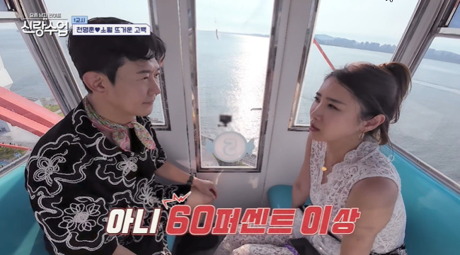 사진=채널A‘요즘남자라이프-신랑수업’캡처사진=채널A‘요즘남자라이프-신랑수업’캡처사진=채널A‘요즘남자라이프-신랑수업’캡처[뉴스엔이하나기자]천명훈이소월의선긋기에도긍정적인반응을보였다.8월13일방송된채널A‘요즘남자라이프-신랑수업’에서천명훈이소월과월미도데이트를했다.소월에게고향의향기를느끼게해주려고인천차이나타운맛집에간천명훈은식사를마친후월미도로데이트를하러갔다.먼저바이킹에탑승한천명훈은“월이야.나좀사랑해줘”라고외치며고백했다.이에소월은조용히미소를지었다.두사람은폭염속에에어컨도무용지물인대관람차에탔다.소월이햇빛을피하려고천명훈쪽으로다가가자,천명훈은“옆모습너무좋아.예뻐”라고기뻐했다.그때천명훈은“남자만날때네마음이한방에100%돼야만나는거니?”라고물었다.소월은“한방에그런건아니고그래도어느정도마음이있어야만나지”라며“60%이상은있어야만날수있어”라고답했다.천명훈이“그럼나는몇%야?”라고묻자,소월은“오빠는6%도안돼”라고다시한번철벽을쳤다.그러나천명훈은“너무좋아서”라며악수를청했다.녹화장에서천명훈은“제가여기서무슨짓을해도0.3,0.4로점수가오르지않았나.저는그정도생각하고있었다.0.7%?6%아래라고하니까제가생각한것보다훨씬퍼센테이지가높은거다”라고이유를밝혔다.천명훈은소월에게“6%도나한테는엄청나다.고맙다”라고말했다.그러나소월은“내가6%도안된다고했지”라고강조했다.천명훈은“그럼5%로하자”라고너스레를떨었고,소월은예상못한천명훈의대답에미소를지었다.뉴스엔이하나bliss21@기사제보및보도자료[email protected]ⓒ뉴스엔.무단전재&재배포금지Copyright©뉴스엔.무단전재및재배포금지.