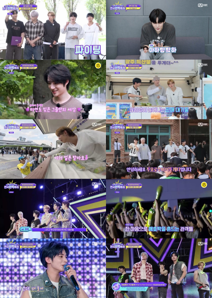 ‘전국반짝투어’(제공:Mnet)Mnet‘전국반짝투어’가어디서도본적없는초특급지역상생페스타로성공적인첫발을내디뎠다.지난12일(화)첫방송된Mnet아이돌페스타대작전‘전국반짝투어’는투모로우바이투게더(이하TXT)와광주광역시의만남으로포문을열었다.바쁜월드투어속에서도K-POP아이돌이지역을직접찾아가는신선한기획,여기에지역주민들에게특산물과공연을원플러스원(1+1)으로제공한다는콘셉트는방송전부터큰기대를모았고,첫회역시다채로운볼거리로시선을사로잡았다.첫방송에서는TXT멤버인수빈,연준,범규,태현,휴닝카이가목적지를모른채‘4단계추리미션’에도전하는모습이펼쳐졌다.사진힌트,댄스챌린지,지역번호맞히기,특산물유추등다채로운미션끝에최종목적지인광주광역시가밝혀지며본격적인반짝투어의막이올랐다.광주출신BTS제이홉은수빈과의전화연결로“광주시민분들은정이많다”며‘거시기’로모든상황이커버되는전라도사투리꿀팁을전수해웃음을자아냈다.가이드딘딘역시현장판매특강으로멤버들을적극지원했다.광주에도착한TXT는지역대표특산물이자공연티켓을겸한‘애호박’을단990원에판매하기시작했다.단하루만에공연을홍보하고티켓까지판매해야하는상황속에서도멤버들은‘원데이애호박앰버서더’로변신해고군분투했다.팝업역할부여권이주어지는웰컴미션에서는태현이3분33초만에판매에성공하며1위를차지했고,이후멤버들은스티커붙이기,포장,홍보,결제등각자의역할을맡아본격적인판매에돌입했다.첫번째팝업장소인광주유스퀘어에서‘야채가게청년’으로변신한TXT는낯선상황속에서도팀워크를발휘하며생애첫애호박판매에나섰다.첫팝업판매량은50개였지만,시행착오를거친뒤열린두번째팝업에서는판매량을두배이상끌어올리며점차탄력을받는모습을보였다.멤버들은제이홉이전수한전라도사투리를활용해팬·시민과친근하게소통했다.현장에는MOA(TXT팬덤)인딸을응원하러온아버지부터세부에서날아온남다른텐션의학생까지다양한시민들의환영과응원이이어졌다.광주장덕중학교를깜짝방문해펼친홍보타임역시학생들에게잊지못할추억을선사했다.광주광역시청야외음악당에서열린피날레공연은이번페스타의백미였다.관객들은공연티켓이자응원봉인애호박을손에들고입장했고,TXT는예상보다훨씬많은관객앞에감동을감추지못했다.‘DejaVu’,‘Miracle’,‘내일에서기다릴게’등히트곡무대가이어지며분위기는절정에달했다.공연중감정이북받친한학생이눈물을흘리자,태현은“너보러온건데왜울어?”라며다정한한마디를건네단체심쿵을유발하기도.응원봉이된애호박,야구장전광판타임을연상케하는‘애호박타임’등이색장면이공연의재미를더했다.최애를눈앞에서만난팬들의감동도배가됐다.“인생최고의생일선물”,“여러지역을챙겨주는모습이인상적이다”등팬들의가슴벅찬소감이이어지기도.이날애호박은현장판매수량을포함해총3,111개가판매돼예상을훌쩍뛰어넘는성과를거뒀고,수익금은지역발전을위해기부되어더욱뜻깊은의미를남겼다.‘전국반짝투어’는전세계를무대로활약중인최정상K-POP아이돌그룹들과지역상생의신선한접점을제시하며첫방송부터눈을뗄수없게만들었다.특히K-POP아티스트의공연을가까이에서접하기어려운지역적특성상더욱큰의미를남기는바.첫주자로나선TXT는무대위와다른인간적인매력으로광주를뜨겁게달궜고,팬과시민모두가주인공이된진정한축제의현장을완성했다.한편,다음주에는NCTDREAM이안동에서사과판매에나서는모습이예고돼기대감을높인다.Mnet‘전국반짝투어’는매주화요일밤10시방송된다.이진주기자bnt뉴스연예팀기사제보[email protected]©bnt뉴스.무단전재,재배포및AI데이터활용금지