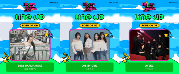 ‘한터음악페스티벌’한음페2차라인업(제공:한터글로벌)H.O.T.완전체출연으로화제가된‘한음페’2차라인업에에이티즈(ATEEZ),오마이걸,마마무솔라가이름을올렸다.‘한터음악페스티벌’(HanteoMusicFestival,이하‘한음페’)을주관하고주최하는한터글로벌(대표이사곽영호)은13일오후‘한음페’공식홈페이지와SNS를통해2차라인업을공개했다.공개된2차라인업에는헤드라이너인H.O.T.를필두로마마무솔라,오마이걸,에이티즈가이름을올렸다.H.O.T.는9월6일과7일양일간헤드라이너로무대에오르며6일에는마마무솔라가7일에는오마이걸과에이티즈가출연한다.아티스트들의스페셜무대가펼쳐질것으로전해져기대를모은다.한터글로벌에따르면이번공연은서울월드컵경기장규모에걸맞은초대형무대로준비됐으며,가족단위의관객을배려해티켓은1인4매까지구매가능하다.티켓예매는NOL티켓(인터파크)에서진행되며만7세이상관람가능한공연으로전석지정석으로운영된다.올해처음개최되는‘한음페’는‘한국음악의터전’한터글로벌이주관하고주최하는공연으로한국음악의역사와함께해온K팝전세대아티스트의특별한무대를만나볼수있다.특히첫론칭하는페스티벌인만큼K팝의시초이자상징적인존재인H.O.T.가헤드라이너로양일간출연하며하루에단체곡과솔로곡을포함해총13곡이상의공연을펼칠예정이다.‘한음페’의공연시간은18시부터22시까지다.이진주기자bnt뉴스연예팀기사제보[email protected]©bnt뉴스.무단전재,재배포및AI데이터활용금지