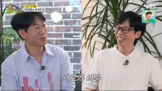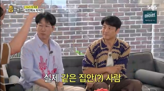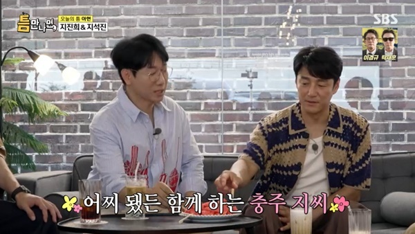 [스타뉴스|김정주기자]/사진=SBS예능프로그램'틈만나면'방송화면배우지진희가코미디언지석진과의외의친분을공개했다.12일방송된SBS예능프로그램'틈만나면'에는지진희,지석진이'틈친구'로출격해아현동탐방에나섰다.이날지석진은"오늘석진이형이나온다고해서나왔다"며각별한사이임을드러냈다.이에유재석은두사람이'충주지씨'종친관계임을밝히며"실제로지씨모임이있었다.석진이형이옛날에진희형이랑친하다고했다"고말해놀라움을자아냈다./사진=SBS예능프로그램'틈만나면'방송화면지석진은"진희랑자주만났었다.요즘은서로바빠서못만난다"고말했다.그는또"충주지씨막내지예은이라고있다.걔랑요즘활동하고있다"고근황을전했고,지진희는"'런닝맨'잘보고있다"고화답했다.이를듣던유재석은"같이'밀크쉐이크'라는노래도냈다.그래서옷도저렇게입고나왔다"고지적했다.이에지진희는금시초문이라는표정을짓더니"이야,안어울린다"라고일침을놔모두를폭소케했다.지진희는"밀크쉐이크가뭐냐.삼계탕이런거좋지않나"라고너스레를떨어웃음을자아냈다.김정주기자[email protected]©스타뉴스&starnewskorea.com,무단전재및재배포금지