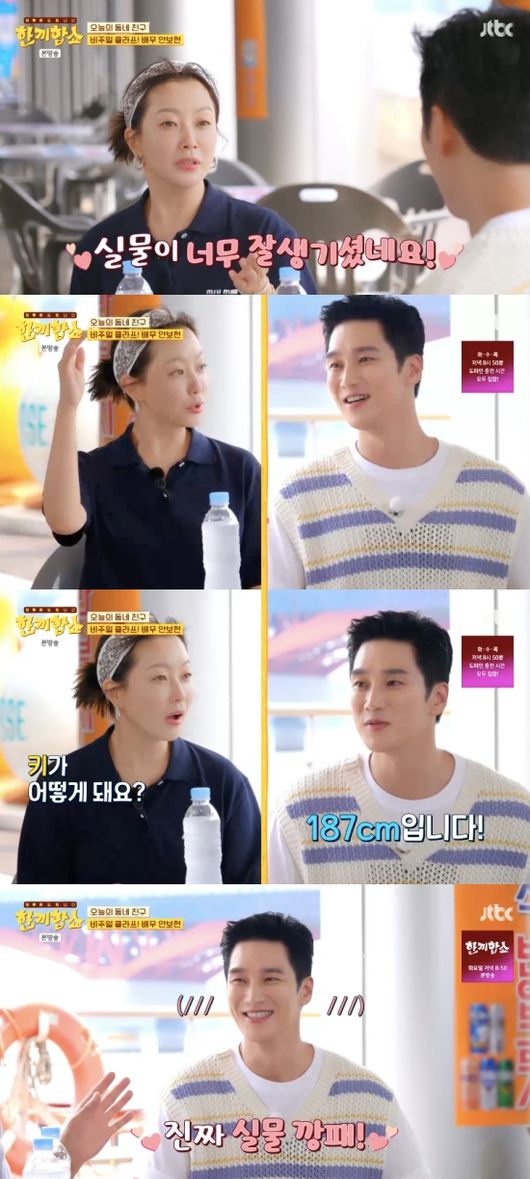 [OSEN=임혜영기자]김희선이안보현의비주얼에감탄했다.12일방송된JTBC‘한끼합쇼’에는배우안보현이게스트로출연했다.김희선은안보현에대해“실물이너무잘생겼다.키가(정말크다).실물깡패다”라고감탄했다.탁재훈은운동을해서몸도좋다고덧붙였다.안보현은현재활발히영화홍보중이라는근황을전했다.안보현은“띵동하고인사드리는건괜찮을것같은데”라며자신감을드러낸후“택배아르바이트를해서띵동을많이해봤다”라고덧붙였다.안보현은“망원동은정이넘친다.7년정도거주했다.부산사람이다.첫집은신림동이다.이후가장오래산곳이망원동이다.제손바닥안이다”라고설명했다.안보현은“유일한취미가캠핑이랑바이크타는것이다”라고설명했으며자취23년차라는안보현은요리에도수준급실력을자랑한다고말했다./[email protected][사진]JTBC‘한끼합쇼’Copyright©OSEN.무단전재및재배포금지.