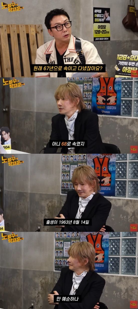 [서울=뉴시스]김장훈.(사진=유튜브채널'노빠꾸탁재훈'캡처)[email protected]*재판매및DB금지[서울=뉴시스]전재경기자=가수김장훈이솔직한입담을뽐냈다.최근유튜브채널'노빠꾸탁재훈'에는'숲튽훈김장훈,허니콤보될까봐교촌에서도망쳐나온노계ㅣ노빠꾸탁재훈시즌3EP.49'영상이공개됐다.영상에서개그맨신규진은"김장훈씨는1963년8월14일생으로만61세다"라며"서울출생이고본적은경상북도울릉군울릉읍독도리다.특징은닭소리,신생아울음소리,일렉기타소리를주로내주위사람들을불안하게한다"고소개했다.이에탁재훈은"원래67년생으로속이고다녔잖아요"라고묻자,김장훈은"아니다.68년생으로속였다"고답했다.김장훈은신체변화에대해서도언급했다.그는"나이먹으면서여성호르몬이생기는지뭐가이렇게몽우리도지고좀이상하더라"고말했다.이어"탁반장도가슴많이처졌는데어떠냐"고농담을건네웃음을안겼다.[서울=뉴시스]김장훈.(사진=유튜브채널'노빠꾸탁재훈'캡처)[email protected]*재판매및DB금지탁재훈은화장품사업을하는김장훈을향해"사업잘되면기부할거냐"고물었고,김장훈은"그렇다"고답했다.그러자탁재훈이"이제기부안하는거같던데"라고하자,김장훈은"요즘돈이없다"고웃었다.김장훈은작년10월JTBC'뉴스룸'과인터뷰에서누적기부액이200억원정도된다며"그것밖에못했나싶다"고털어놓기도했다.☞공감언론뉴시스[email protected]©뉴시스.무단전재및재배포금지.