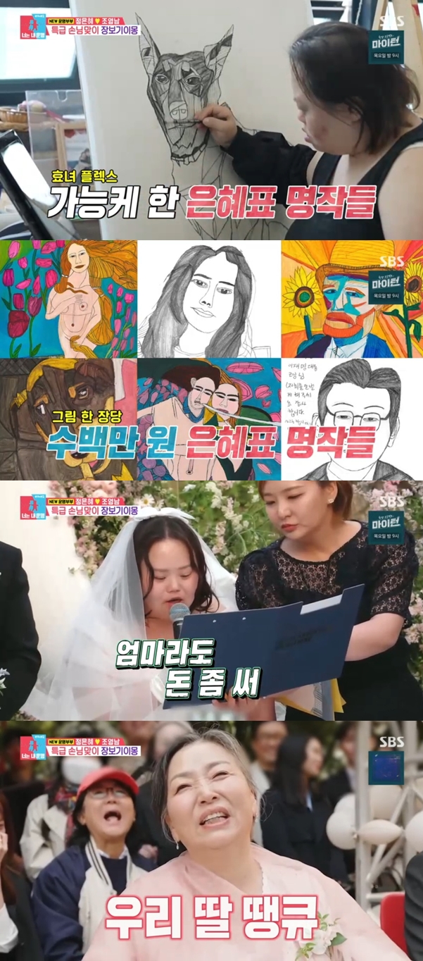 동상이몽2정은혜작가/사진=SBS방송캡처[스포츠투데이임시령기자]'동상이몽2-너는내운명'정은혜가그림으로아픔을이겨낸일화를털어놨다.11일방송된SBS예능'동상이몽2-너는내운명'에서는정은혜,조영남부부의이야기가그려졌다.이날정은혜아버지는"성인이된은혜는갈곳이없었다.20살이된후은혜작가가동굴속에서살았다.은혜작가의방"이라고말했다.다운증후군을바라보는사회적시선에고통스러웠다는정은혜다.그는"힘들었다.되게.시선강박증도있었고,조현병도왔었다"고과거아픔을털어놨다.정은혜어머니가"옛날에누구랑혼자서얘기하지않았냐"고하자정은혜는"고인김광석"이라고밝혔다.그러던중정은혜의아버지는"23살때그림하나를보여줬다.그때가능성을발견했다.이그림을가지고이방에서,동굴속에서나오게하자싶었다.마침동네에리버마켓이열리는데사람들얼굴을그리게하고자나갔다"고얘기했다.정은혜는그림그리며사람과대화를이어갔고,행복함도찾고동굴속으로나왔다고.어머니는"은혜한테쉬자고했는데,'사람들이날기다려'라더라"고뿌듯해했다.정은혜의그림실력은명작이었다.한장당수백만원이라고.은혜어머니는"딸카드를쓰고있다.살고있는전셋집도은혜가벌어준돈으로얻어준것"이라며딸의실력을인정했다.[스포츠투데이임시령기자[email protected]]Copyright©스포츠투데이.무단전재및재배포금지.