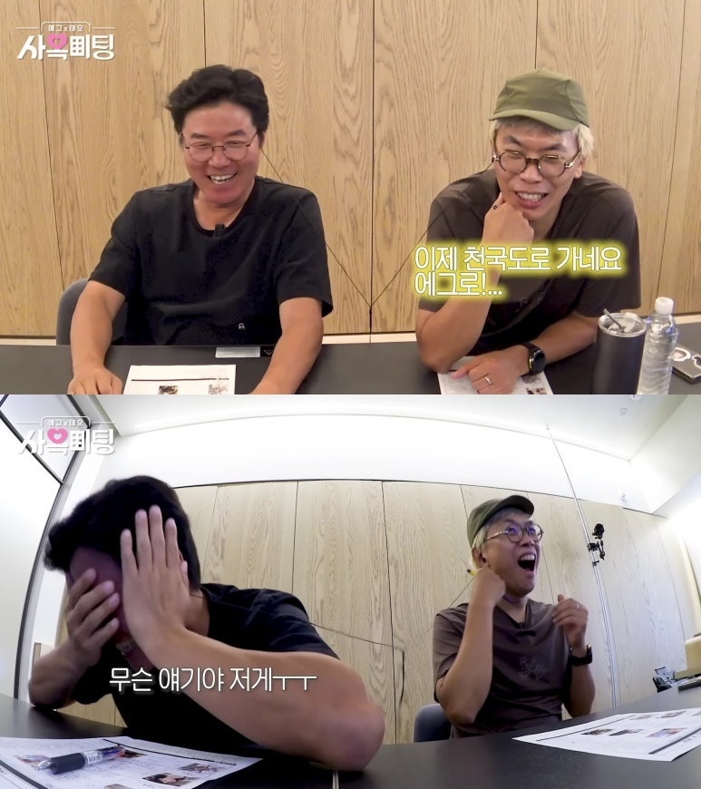 [리뷰]유튜브<채널십오야>'사옥미팅'김상화칼럼니스트▲채널십오야'사옥미팅'ⓒ에그이즈커밍21세기대한민국TV예능의양대'장인'이한자리에모였다.지난8일유튜브'채널십오야'를통해공개된<사옥미팅>1편은요즘대세를이루고있는연애예능의유튜브판이라는점뿐만아니라나영석·김태호라는국가대표예능PD들이힘을모았다는점에서구독자들의관심을모았다.그도그럴것이두사람은각각KBS<1박2일>과MBC<무한도전>을통해2000년대후반이후국내TV예능의흐름을바꾼주역으로손꼽힌다.이후나영석PD는CJENM이적후현재에그이즈커밍을통해다양한작품을내놓으면서동시에출연자로서도맹활약하고있다.김태호PD는<무한도전>종영후<놀면뭐하니?>를거쳐역시독자적인제작사TEO를설립하고케이블및종편채널을통해다양한프로그램을선보이고있다.한창<1박2일>,<무한도전>등이주말예능판도를바꿔놓았을때일부시청자들은SBS<런닝맨>까지포함한3개작품컬래버를기대하는의견을개진했었고실제구체적인논의도있었지만결과적으로현실화되진못했다.그런데시간이지나각자새로운업체에몸담고있는2025년의외의지점에서나영석PD와김태호PD두사람이한화면에등장하는놀라운장면이연출됐다.예능PD들이출연자로나선연애예능▲채널십오야'사옥미팅'ⓒ에그이즈커밍'채널십오야'를통해공개된<사옥미팅>의구성은기존연애예능과크게다르지않다.일련의남성·여성출연자들이다양한게임을거쳐마음에드는인물을선택하는,얼핏보면그냥흔하디흔한연애프로그램의또다른신작처럼비칠수있다.그런데이러한예능프로그램을만드는제작진(PD)들이직접'플레이어'가되어작품속에뛰어든다면어떤그림이완성될까?에그이즈커밍의여성PD,TEO소속남성PD들이각각'맞선'의주인공으로등장했다는점에서<사옥미팅>은묘한호기심을자극했다.양사모두본격적인연애예능을제작해온업체는아니었지만이번유튜브콘텐츠를통해새로운영역에발을내디딘것.이를통해색다른예능협업의가능성을내비친것이다.여기에각업체의수장격인나영석PD와김태호PD가관찰자이자MC역할을담당하면서독특한재미와웃음을적절한시점에안겨주면서기존자극적인연애예능과는차별화된개성을뽐내기시작했다.직원들만남에과몰입한나영석·김태호PD▲채널십오야'사옥미팅'ⓒ에그이즈커밍<사옥미팅>이진행된장소는마포구상암동에위치한TEO사무실이었다.인기유튜브콘텐츠<쌀롱드립>에촬영되는곳으로유튜브예능시청자들에겐제법친숙한공간에에그이즈커밍여성PD들이입장했다.이들은편집실안책상에비치된집기,물건등을통해오늘만남을가질주인공들의성격,성향을추리했다.뒤이어등장한TEO남성PD들과한자리에모인남녀출연자들은TV프로그램제작을담당하는이들답게각자의영역에대한이야기를나누면서상대방파악에돌입했다.이러한광경을모니터로관찰한나영석PD와김태호PD는"저렇게말하면안되는데...","저게무슨얘기야!"라고말하며과몰입하기시작했다.때론얼굴을감싸는등여타연애예능관찰자이상의역할을충실히담당해줬다.에그와TEO본격협업기대해도될까?▲채널십오야'사옥미팅'ⓒ에그이즈커밍엄밀히말하면이번<사옥미팅>은에그이즈커밍이제작하는프로그램에TEO소속직원들이출연자로등장하는,가장낮은강도의협업에지나지않았다.하지만TEO의대표이기도한김태호PD가직접MC에해당되는관찰자로나영석PD와함께나섰다는점은의미를둘법하다.예전지상파방송사소속직원신분일당시만하더라도그저상상속일에지나지않았던두사람의본격적인협업예능탄생도기대할수있다는점에서<사옥미팅>의등장은단순한유튜브예능등장이상의중요한의미를가진다.뿐만아니라연애예능촬영과는별개로기존채널십오야의간판토크콘텐츠인'와글와글'에도김PD가초대손님으로출연한다는소식이전해졌다.다소성급할수있지만이들의예능을사랑하는시청자들은벌써부터두업체의좋은시너지효과를기대하고있다.덧붙이는글|이기사는김상화칼럼니스트의블로그(https://blog.naver.com/jazzkid)에도실립니다.Copyright©오마이뉴스.무단전재및재배포금지.