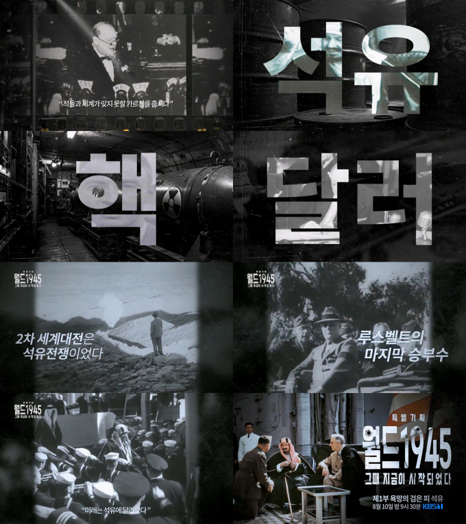 특별기획3부작다큐멘터리‘월드1945’(제공:KBS1TV)KBS가2025년야심차게선보이는특별기획3부작다큐멘터리,‘월드1945’가배우김서형의목소리와함께제2차세계대전이끝난직후인1945년,휘몰아친격동의세계사를조명한다.그중심에는‘현시대의절대반지’석유,핵,달러가있다.8월10일밤9시30분첫방송되는KBS1TV특별기획3부작다큐멘터리‘월드1945’가강렬한분위기의티저와1회예고영상을공개했다.티저영상에서는지금의우리가살아가는세계질서의시작이된1945년을주목한다.티저영상속에는루스벨트,히틀러,도조히데키등세계패권을거머쥐길원했던제2차세계대전의주요참전국수장들이모습을드러냈다.또전쟁이끝난1945년이‘새로운패권전쟁’의시작이었음을예고했다.‘월드1945’는세계를지배하는새로운패권,석유-핵-달러를중심으로과거당시의생생한아카이브영상과참전군인등당사자의증언과각계최고전문가인터뷰를통해입체적으로풀어낸다.특히강렬한영상미와몰입감높은스토리텔링에‘믿보배’김서형의매력적인목소리가함께한내레이션으로,시청자들의눈과귀를사로잡을전망이다.한편1회‘욕망의검은피,석유’예고영상에는제2차세계대전당시미국의대통령이었던프랭클린루스벨트가등장한다.루스벨트는‘미래는석유에달려있다’고믿었다.한전문가는“우리가사는세상은루스벨트가만든세상이다”라고평가했다.‘월드1945’에서는제2차세계대전을승리로이끈주역,루스벨트대통령의발걸음을따라가며세계석유패권의운명을결정지은그날을조명할예정이다.‘믿음의목소리’배우김서형의내레이션과함께할KBS특별기획‘월드1945’3부작은8월10일(일)밤9시30분1부‘욕망의검은피,석유’로첫방송된다.이후17일(일)‘2부죽음의여정,핵’,24일(일)‘3부왕관의무게,달러’를KBS1TV를통해선보인다.한효주기자bnt뉴스연예팀기사제보[email protected]©bnt뉴스.무단전재,재배포및AI데이터활용금지