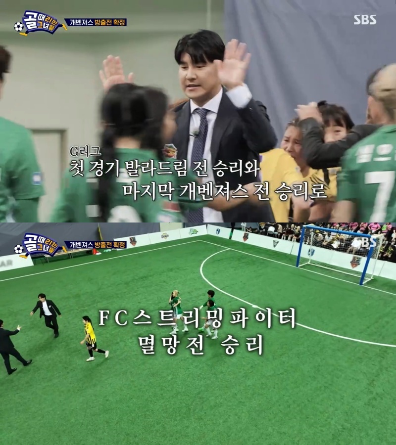 [리뷰]SBS<골때리는그녀들>또다시방출위기맞은개벤져스,예견된G리그부진[김상화칼럼니스트]▲SBS'골때리는그녀들'ⓒSBS리그전잔류냐?탈락이냐?우승도전보다더욱치열한<골때녀>토너먼트가시작되었다.6일방영된SBS<골때리는그녀들>G리그멸망전첫경기에서FC스트리밍파이터(아래'스밍파')가난적FC개벤져스를3대1로완파하고방출위기를딛고잔류에성공했다.각각A그룹과B그룹3위까지부여되는6강토너먼트진출권을얻는데실패하고방출팀을결정짓는멸망전토너먼트로밀려난두팀은경기초반치열한공방전속에득점없이전반전을끝마쳤다.하지만후반이후180도달라진공격력을앞세운스밍파가연속3득점에성공하면서단번에승패가결정나고말았다.이로써스밍파는천신만고끝에승리를차지하면서기분좋게G리그최종전을마무리짓게되었다.반면한차례출장정지의아픔을겪고복귀했던개벤져스는또다시방출전으로밀려나FC탑걸대FC월드클라쓰전패배팀과마지막승부를겨룰수밖에없는처지에놓였다.방출전추락만큼은피해야▲SBS'골때리는그녀들'ⓒSBS몇달전진행된G리그B그룹경기에서스밍파가멸망전까지밀려나리라고예상한시청자들은그리많지않았다.불과직전에치른대회에서최강팀으로손꼽혔던월드클라쓰를상대로우승도전에나설만큼상승세의전력을갖고있었기에이번'멸망'토너먼트는스밍파의자존심에어느정도생채기를남긴셈이었다.이에맞선개벤져스는닮은듯다른처지에서생존을위한승부에임했다.<골때녀>출범부터시작된원조구단중하나였지만좀처럼좋은성적을거두지못한데다방출의수모까지경험하는등바닥까지추락한팀의위상을다시끌어올려야하는절박한처지에놓인것이다.리그잔류를위해양팀은엄청난체력의소유자들인심으뜸(스밍파)대김혜선(개벤져스)의맞대결구도로멸망토너먼트첫경기를진행했다.부상으로인해A그룹경기를제대로소화하지못했던김혜선이돌아왔고임대멤버로가세했던박진주가정식멤버로전환된개벤져스로선"이번만큼은꼭잔류"라는각오로임했지만경기는생각대로흘러가지않았다.98일만에무득점탈출▲SBS'골때리는그녀들'ⓒSBS전반을득점없이끝마친양팀은이제후반전무조건골을넣어야하는절박한심정으로경기에임했다.0대0의균형을먼저깬건스밍파였다.후반1분무렵킥인상황에서심으뜸이절묘한중거리슛으로상대골키퍼김민경조차도저히막을수없는공간에골을넣은것이었다.기세가오른스밍파는두번째득점과세번째골역시거의동일한방법의세트피스전술로연달아점수를뽑아냈다.똑같은방법으로심으뜸이강하게찬공이각각수비수김승혜의발맞고자책골이연결되는가하면문전에자리잡았던팀동료나다의데뷔첫골성공으로연결되면서순식간에3대0리드를만들었다.지난3경기연속무득점에그쳤던스밍파는무려98일만에골맛을봤고동시에G리그잔류라는유종의미를거둘수있었다.반면전반전대등한경기를펼쳤던개벤져스는연달에세골을허용하면서일찌감치패배를직감할수밖에없었다.뒤늦게김승혜가중거리슛으로1점따라붙긴했지만딱여기까지였다."의욕만으로는..."개벤져스의예견된고전▲SBS'골때리는그녀들'ⓒSBS스밍파로선천신만고끝에G리그잔류를확정지었지만팀으로선이번대회가두고두고아쉬움으로남을만했다.우승문턱까지도달했던팀이멸망전추락일보직전의위기를맞이했기때문이다.공석이된골키퍼자리를메우기위해수비수깡미가포지션을바꾸면서전반적인조직력이예전같지않았고이는주공격수심으뜸의득점력하락으로연결되는마이너스요인으로작용했다.자연히공격루트가단순해지면서좀처럼골맛을보기어려운지경에놓인결과3경기연속무득점패배의쓴맛을경험하고말았다.다행히막판준비했던세트피스기회를모두점수로연결시키면서자존심을지킨스밍파로선한숨돌릴수있는여유를마련했다.이에반해방출전으로밀려난개벤져스는그간의문제점이다시한번경기에반영되면서패배라는어두운그림자를피하지못했다.전체적인조직력또는정교한패스연결보단반칙이우려될만큼거친플레이로일관하다보니오히려이렇다한득점기회마련에어려움을겪었다.방출만큼은면해야하는절박한심정은어느정도이해되었지만"의욕만으론점수를만들어주지않는다"는지극히당연한결과가고스란히경기를통해드러나고말았다.투박함대신세밀함이필요한개벤져스에게남은기회는이제방출전,단한경기뿐이다.덧붙이는글|이기사는김상화칼럼니스트의블로그(https://blog.naver.com/jazzkid)에도실립니다.Copyright©오마이뉴스.무단전재및재배포금지.
