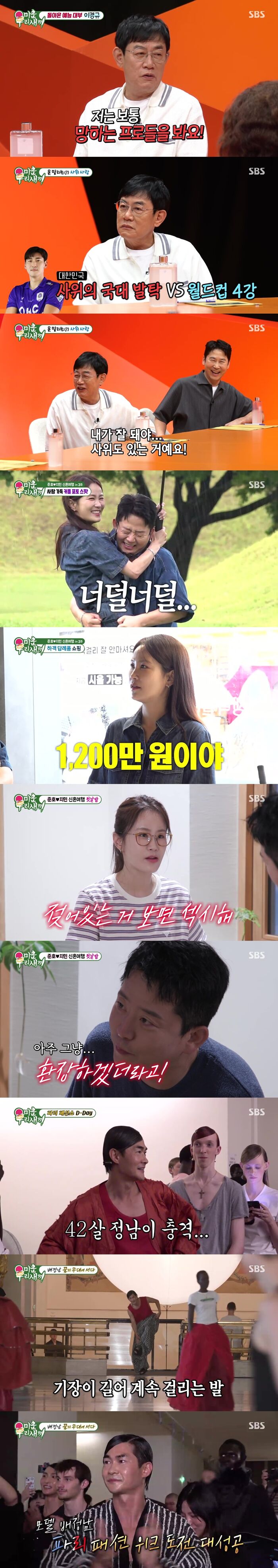 [SBS연예뉴스|강선애기자]김준호와김지민부부의달콤한신혼여행이공개된'미운우리새끼'가변함없이주간예능1위자리를지켰다.지난3일방송된SBS'미운우리새끼'는닐슨코리아집계결과2049시청률3.5%로주간전체프로그램2049시청률1위를기록했고,수도권가구시청률은12.2%로주간예능1위를차지했다.이날방송에스페셜MC로출연한이경규는특유의입담으로눈길을끌었다.그는평소방송을잘보지않는다며"망하는프로그램을보며자신감을채운다"고밝혀웃음을자아냈다.이어진최애MC월드컵에서이경규는유재석과신동엽의결승전에서신동엽을최종선택하고는"제가어디에와있냐"며센스를발휘했다.또한축구선수사위김영찬에대한애정도드러냈다.이경규는대한민국의월드컵4강과사위의국대발탁중선택해야하는질문에"2002년에월드컵4강한번하면됐지,우리사위가국가대표가되는게훨씬더좋다"며사위사랑을폭발시켰다.하지만유튜브구독자100만과사위의국대발탁중선택하라는질문엔"내가잘돼야사위도있다"고자기애를드러내폭소를유발했다.김준호와김지민부부는결혼후처음으로떠난신혼여행에서달콤한신혼케미를뽐냈다.두사람은경주를찾아커플사진을촬영하고,MZ핫플에서데이트를즐겼다.아직결혼식답례품을준비못했다는두사람은경주쌀로빚은막걸리쇼핑에나섰다.하객만1200명,축의금만1400명이상으로'재혼결혼식'역사상최대규모를기록한만큼답례품비용만1200만원에달했는데,김준호는"축의금가격대별로구분을해야한다"면서고액납부자로유지태,신동엽,서장훈,권상우,이영자등을언급해눈길을끌었다.이어김준호와김지민은난임치료를전문으로하는한의원을방문해본격적인2세계획을세우는모습도공개됐다.한의사는김지민에게"예민하신편이다.예민하신분들은아기를빨리가지라고권한다.감각이예민한분들은아기를빨리가지면좀둔해진다"며"임신은잘될것같으니,준호씨가노력을좀더해야한다"고조언했다.이에김준호는"오늘헐크되는한약도있냐"며신혼첫날밤을기대하는모습으로웃음을자아냈다.숙소에서신혼첫날밤저녁을함께하던중김지민은최근다이어트에성공한김준호를보며"오빠요즘얼굴이날렵해져서젖어있는거보면섹시하다"며"옛날엔뚱보가젖은느낌이었는데지금은바람피울것같이생겼다"고농담했다.이에김준호는"극찬인데?"라며기뻐했고,김지민은"약간불안하다.너무잘생겨서"라며애정을드러냈다.김준호는"네가샤워하고나올때아주그냥환장하겠더라"고애정을과시했다.한편,이날방송에서배정남은파리패션쇼에처음으로도전하는모습으로화제를모았다.배정남은이상민과함께파리에도착해헤어스타일부터왁싱까지철저히준비했지만,리허설에서동선이꼬이고긴바지를계속밟으며크게당황했다.심지어후배모델이그의나이를'50살'로오해하는굴욕까지당했다.그러나배정남은본쇼에서긴장감을극복하고자신감넘치는눈빛과능숙한워킹을선보이며무대를성공적으로마쳤고,어머니들은그의프로다운면모에박수를보내며감탄을자아냈다.'미운우리새끼'는매주일요일밤9시에방송된다.강선애기자[email protected]©CopyrightⓒSBS.Allrightsreserved.무단전재,재배포및AI학습이용금지