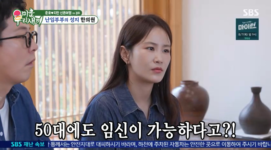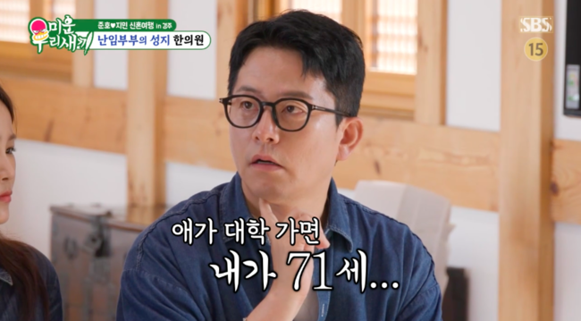 [OSEN=박하영기자]‘미운우리새끼’김준호와김지민이2세를꿈꿨다.3일방송된SBS예능‘미운우리새끼’(이하‘미우새’)에서는많은이들의축복속에서결혼식을올린김준호,김지민의경주신혼여행모습이최초공개됐다.이날김준호와김지민은‘난임커플의성지’로불리는경주의유명한의원을방문했다.김준호는“우리가지금아이를낳아도사실애가대학교를가면내가71세다”라고했고,김지민은“나는60대”라고말했다.또김준호는“이번에‘독박’찍었잖아대희형첫째대학갈때등록금모아서해줬다”라고했고,김지민은“오빠들이70세되면마음바뀔거같은데독박투어안하면안줄것같은데”라고우려했다.이에김준호는“그러니까빨리낳아야돼”라며“원래허니문베이비도많이만든다잖아”라고2세를꿈꿨다./mint1023/@osen.co.kr[사진]‘미운우리새끼’방송화면캡처Copyright©OSEN.무단전재및재배포금지.