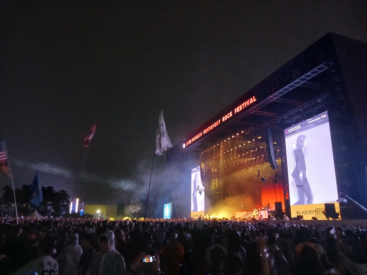 ‘2025인천펜타포트락페스티벌’뜨거운열기속에‘2025인천펜타포트락페스티벌’(이하펜타포트)3일째공연이이어졌다.3일인천송도달빛축제공원펜타포트전용무대에서록과대중음악의큰잔치가펼쳐졌다.메인무대헤드라이너인벡,서브헤드라이너자우림을위시해3호선버터플라이,이승윤,바밍타이거등19개팀이3개의스테이지를풍성하게음악으로채웠다.헤드라이너인미국팝록싱어벡은여러장르들을월장하며노래를만들어온아티스트답게개성이강한무대를연출했다.공연초반에는록페스티벌에맞게록킹하면서도댄서블한리듬이강한곡들로페스티벌매니아들을사로잡았다.중반에는비가내리는가운데슬로우템포의서정적인곡을배치했고후반부는자신의음악적개성이드러나는인상적인곡들로펜타포트20주년의대미를장식했다.‘2025인천펜타포트락페스티벌’서브스테이지인인천스테이지헤드라이너3호선버터플라이는최근재결성과신보발매에이어록페스티벌헤드라이너공연까지이어지는의미있는행보를보여줬다.이들은엔딩곡으로한국20세기록음악씬대표밴드인산울림의노래‘내가고백을하면깜짝놀랄거야’를들려줬다.서브헤드라이너로무대에오른자우림은흥겨움과서정성이조화를이룬특유의사운드로관객을사로잡았다.보컬김윤아는“잿밥에관심이많다”며이날헤드라이너인미국가수벡의이름을연호하게유도하는조크를던지며여유롭게스테이지를이끌었다.이날자우림은‘록페스티벌’성격에맞게강하고힘찬비트를지닌곡과격정적인파워발라드로한알찬셋리스트를공연을했다.‘2025인천펜타포트락페스티벌’델리스파이스와스위트피에서활동해온김민규는솔로아티스트로인천스테이지서브헤드라이너로다정하고부드러운스타일의곡들위주로저녁시간에감성적인무대를꾸몄다.그는특히델리스파이스히트곡을셋리스트에배치해관객들도함께노래를합창했다.본인을포함해6인조밴드셋으로메인무대에오른록싱어이승윤은열정적인무대로관객들환호를받았다.해외아티스트불참으로공연하게된그는열정적인퍼포먼스로엄청난환호를받았다.미국하드코어록밴드TouchéAmoré는하드록을바탕으로한강하고빠른연주와노래로록팬들의환로를이끌어내며록페스티벌의진수를느끼게했다.‘2025인천펜타포트락페스티벌’이날페스티벌마지막날오프닝은극동아시아타이거즈가인천스테이지에서첫공연을펼쳤고심아일랜드가인천에어포트스테이를,윤마치가KB국민카드스타쉽무대에올라축제마지막날을시작했다.메인스테이지에서는한로로의공연에이어한국계미국힙합싱어AUDREYNUNA가열정적이고인상적인퍼포먼스를보여줬고밴드셋으로무대에오른버밍타이거는거침없이달려가는듯한신나는스테이지로페스티벌매니아들의큰박수를받았다.‘2025인천펜타포트락페스티벌’마지막날공연에는외들외에도송소희,컨파인트화이트,데카당,밀레나,루시,BrandySenki,Milledenials등이스테이지를빛냈다.‘2025인천펜타포트락페스티벌’손봉석기자[email protected]©스포츠경향.무단전재및재배포금지.