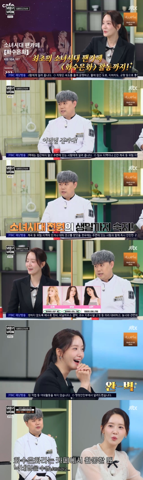 사진=JTBC[스포츠투데이김태형기자]윤아가권성준의과거팬카페활동사실에신기해했다.3일방송된JTBC'냉장고를부탁해'에는영화'악마가이사왔다'의윤아와안보현이출연했다.이날권성준셰프는"2007년소녀시대데뷔당시에중학교1학년이었다.그당시에자타공인소시팬으로서'화수은화'활동을했다"고밝혔다.이에최현석셰프는검증이필요하다며진정성을의심했다.이에권성준은"이번엔진짜다.검증도받을수있다"며소녀시대멤버들의생일을줄줄이읊었다.윤아는"이렇게까지검증을"이라며웃었다.이를들은정호영은"어머니생신은알고있느냐"고기습질문을던졌다.권성준은"음력이어서"라고머뭇거려웃음을안겼다.특히김성주는"소녀시대팬은맞는데최애멤버가수영씨다.제가잡아냈다.권성준의팬카페닉네임이'수영남편'이었다.'윤아남편'이아니다"라고폭로했다.이에권성준은"일단팩트"라며"제가'화수은화'카페에서활동할때닉네임을'수영남편'이라고정했다.하지만지금은윤아님을좋아한다"고밝혔다.윤아는권성준이팬카페활동을한사실에놀라는모습이었다.그는"모두의팬이죠"라며너그러운반응을보였다.한편윤아는자신이생각하는K팝아이돌센터의기준에대해"조화로움이지않을까.양쪽,모두를다조화롭게잡아줄수있는에너지"라고말했다.[스포츠투데이김태형기자[email protected]]Copyright©스포츠투데이.무단전재및재배포금지.