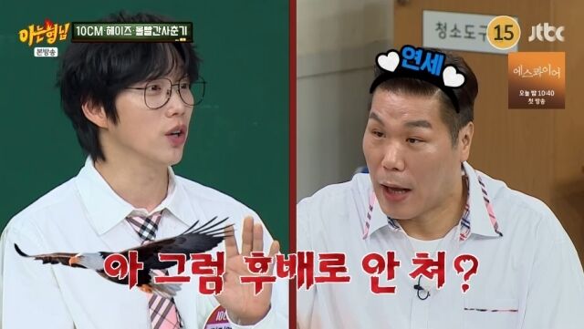 JTBC'아는형님'/JTBC'아는형님'방송캡처[마이데일리=강다윤기자]농구선수출신방송인서장훈이'연대동문'10CM권정열에게호감을표했다.2일방송된종합편성채널JTBC'아는형님'에서는많은이들의플레이리스트를책임지고있는가수10CM권정열,헤이즈,볼빨간사춘기안지영이출연했다.JTBC'아는형님'/JTBC'아는형님'방송캡처이날서장훈은"나정열이가연대를다니다가중퇴했다는이야기를최근에알았다"며동문인연을꺼내들었다.하지만권정열은"그럼후배로안치냐.나매년기부하는데학교에?"라고맞받아쳤다.이에서장훈은"몇년다니다가중퇴한거냐?"라고물었고권정열은"2학년까지열심히다녔다"고답했다.그러자서장훈은"그럼무조건동문이다.요즘그사실을알고나서(연대)홍보대사입장에서더더욱좋아졌다"며남다른연대사랑을드러냈다.Copyright©마이데일리.무단전재및재배포금지.