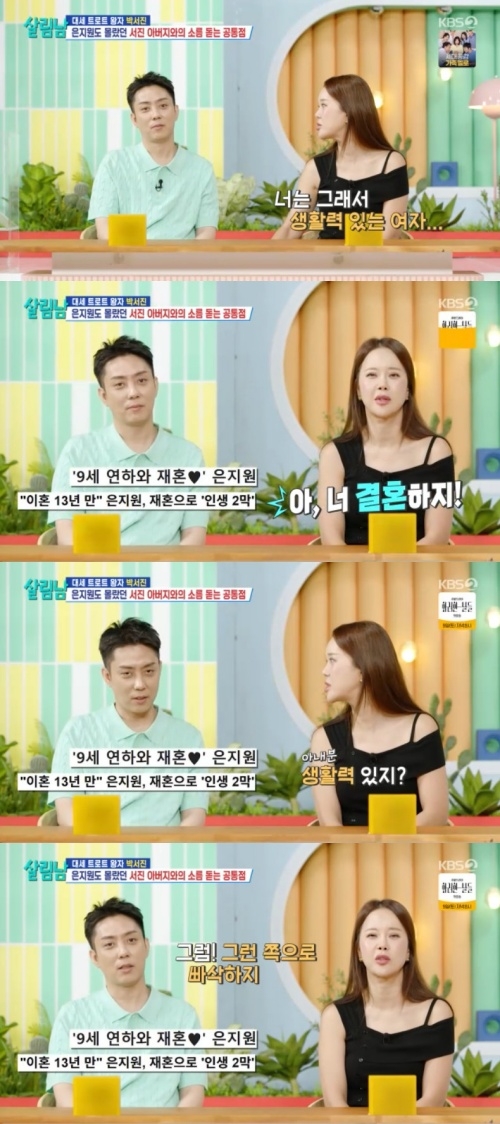 ‘살림남’.사진lKBS은지원이새신부를칭찬했다.2일오후방송된KBS2‘살림하는남자들시즌2’(이하‘살림남’)에서박서진은부모님에게어플로택시잡는방법까지알려드렸다.이날방송에서VCR을보던은지원이잘모르겠다고하자박서진은“지원형키오스크모르셨잖아요.저건아세요?”라고놀렸다.이에은지원은“저것도처음봐요.이렇게(손흔들면서)는잡아봤지...저런거알려줘도알고싶은마음도없어”라고답했다.옆에있던백지영은“너는진짜생활력있는여자...아너결혼하지?생활력있지?”라고물었다.이에은지원은“그럼!그런쪽으로빠삭하지”라고답하자백지영은“네말들어보니까그런것같더라”고수긍했다.‘살림남’은매주토요일오후9시15분에방송한다.[서예지스타투데이객원기자]Copyright©스타투데이.무단전재,재배포및AI학습이용금지