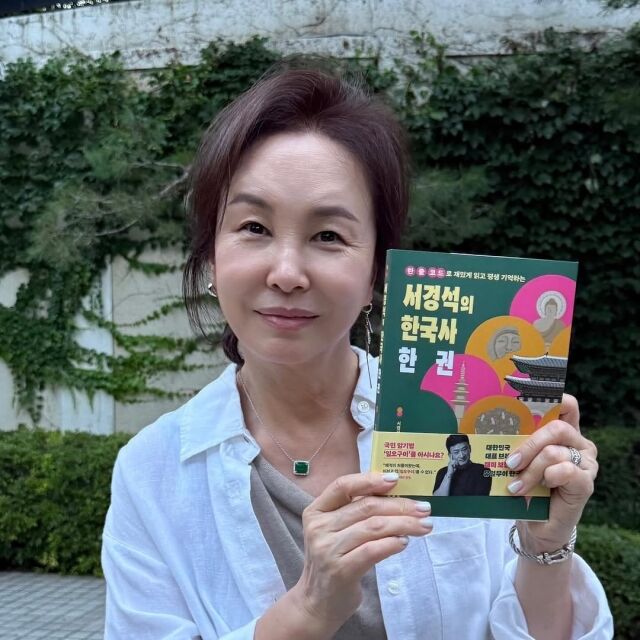 원숙미를자랑하는배우김미숙이서경석의신간'서경석의한국사한권'을들고있다./김미숙소셜미디어[마이데일리=서기찬기자]배우김미숙이폭염의8월을시작하면서한권의책을소개했다.김미숙은1일자신의SNS계정에"나의8월의책^^/전동네주민…’서경석의한국사한권‘…/진짜대단한사람!!^^@sukyungsuk/가방속에이한권…틈틈이…오늘부터공부시작!^^/#서경석#서경석의한국사한권"이란글과함께책을들고있는모습을공유했다.푸른잎이우거진배경앞에서환하게웃고있는김미숙은서울대출신개그맨서경석의신간'서경석의한국사한권'을들고포즈를취했다.단정하게정리된갈색묶음머리에하얀셔츠를걸쳐입은46년차배우김미숙의모습은시원하고차분한느낌을준다.미소짓는표정에서책에대한애정과만족감이느껴진다.전체적으로편안하면서도우아한분위기를자아낸다.배우김미숙(왼쪽)과개그맨서경석./서경석소셜미디어김미숙의포스팅을본누리꾼들은"8월의선생님안녕하세요","와!8월입니다~시간이너무빨라요^^","선생님을알게되어정말행운입니다!당신을그리워하고있습니다.","누님의연기열정에비하면전정말아무것도아닙니다요!~","행복한8월되세요~선생님"등의반응을보였다.한편개그맨서경석은'서경석의한국사한권'출간에앞서지난6월29일자신의SNS계정에김미숙과그녀의남편최정식작가와함께있는사진을공개하며친분을자랑했다.세사람은같은동네에거주중인이웃사촌으로알려졌으며,서경석과의만남은김미숙의남편최정식이쓴소설'재즈러버스'의출간을계기로이뤄진것으로알려졌다.김미숙은지난1월26일에종영한JTBC드라마'옥씨부인전'에서단아하고섬세한연기를선보였다.Copyright©마이데일리.무단전재및재배포금지.