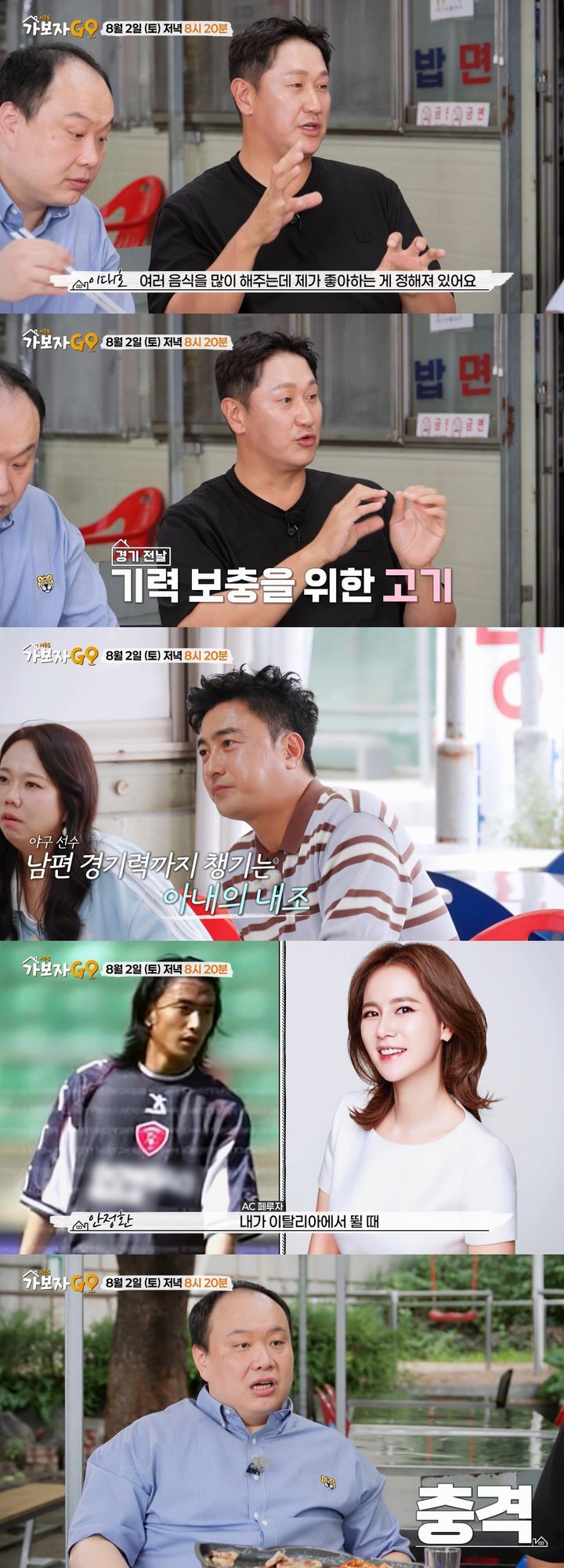 [서울=뉴시스]오는2일방송하는MBN예능프로그램'가보자GO시즌5'에서는이대호가출연해전축구선수안정환과함께아내의내조에관한이야기를나눈다.(사진=MBN'가보자GO시즌5'제공)[email protected]*재판매및DB금지[서울=뉴시스]신지아인턴기자=야구선수출신이대호가아내의남다른내조를자랑한다.2일오후8시20분방송하는MBN예능프로그램'가보자GO시즌5'에서는이대호가출연해전축구선수안정환과함께아내의내조에관한이야기를나눈다.안정환이"(선수생활할때)좋은음식많이먹었냐"고묻자이대호는"그렇다.결혼하고좋았다"고답한다.이대호는"아내가여러가지음식을많이해줬는데,내가좋아하는음식이정해져있다"며"경기전에고기를구워서주고,어묵탕에여러가지를넣어서만들어줬다"고말한다.또그는"그거먹고홈런치면다음날또먹고싶다.그런데안타를못치면그다음날절대그음식이안나온다"고징크스를밝힌다.그런가하면안정환은'아내가요리잘하지않냐'는질문에"다맛있다"라고한다.이어그는"내가이탈리아리그에서뛸때아내가시장에서장어를사왔다"며"아나콘다만한걸솥에서삶고있는데이게구렁이허물벗겨지듯이뜨더라.그걸비위상하는데도(요리)해서나를먹이더라"라고회상한다.안정환은"아내도처음해본거다.그때가장고마웠다"며아내에대한마음을전한다.☞공감언론뉴시스[email protected]©뉴시스.무단전재및재배포금지.