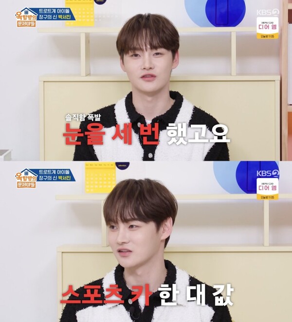 [텐아시아=조나연기자]사진=KBS2TV'옥탑방의문제아들'가수박서진이솔직하게성형을고백하게된이유를밝혔다.31일방송된KBS2TV예능'옥탑방의문제아들'에는박서진이출연해입담을펼쳤다.이날방송에서MC김숙은"전에봤을때와많이달라졌다"고언급했고,박서진은"페이스오프수준이다.눈,코,입전체적으로다했다.눈은세번수술했다"고솔직하게밝혔다.홍진경이"쌍꺼풀이자연스럽다"고하자,그는"그럼성공한것"며웃음을보였다.이어"코는실리콘과기증늑연골을넣었고,입술에는보톡스와필러,턱도보톡스를주기적으로맞는다"고덧붙였다.사진=KBS2TV'옥탑방의문제아들'또한그는성형고백을하게된계기에대해"원래는말할생각이없었다.그런데방송중LED화면에과거내얼굴이크게나왔다.너무달라서양심에찔리더라.그래서솔직하게밝히게됐다"고털어놨다.이어성형비용을묻는질문에박서진은"스포츠카한대값정도들인것같다"며"시술만해도6개월에한번씩맞는다.피부과도매달다니니까몇백깨진다.거기에모발이식도했다"고솔직하게전했다.박서진의성형고백에누리꾼들은"솔직하고용기있다","꾸준한관리가멋지다","예전도좋지만지금도멋지다"는반응을보이며응원을보내고있다.조나연텐아시아기자[email protected]©텐아시아.무단전재및재배포금지.