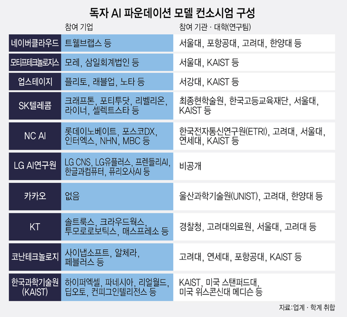 LG등3곳비공개전략유지AI모델개발·성과장외전치열국가대표인공지능(AI)확보를위한'독자AI파운데이션모델'프로젝트참여컨소시엄평가가종료됐다.최대5개컨소시엄이선정될예정인가운데10개컨소시엄구성윤곽이드러나며사업결과에관심이쏠린다.25일서면평가를통과한10개컨소시엄은30~31일이틀간각5개컨소시엄씩나뉘어각각발표평가를진행했다.과학기술정보통신부는평가위원회의발표평가결과에해외전문가평가결과를더해최종사업자를선정한다.발표를앞두고비공개전략을고수해온NCAI,업스테이지등이컨소시엄을전격공개했다.NCAI는롯데이노베이트·포스코DX·NHN·MBC등데이터확보와AI실증에유리한대기업군,업스테이지는플리토·래블업·노타등실력있는AI스타트업과각각팀을꾸렸다.발표평가가종료됐음에도LGAI연구원과카카오·KAIST는철저하게비공개전략을유지하고있다.최종발표때까지컨소시엄공개는없다는입장이다.전자신문취재에따르면카카오는해외모델파인튜닝없는'프롬스크래치'모델을강조하며기업참여없이울산과학기술원(UNIST)·고려대·한양대등10개내외대학팀을,LGAI연구원은한컴·프렌들리AI·퓨리오사AI·LGCNS·LG유플러스를,KAIST는해외석학과교수창업기업등으로각각정예팀을꾸렸다.평가과정에서장외전도치열했다.주요컨소시엄주관기업은발표평가를앞두고AI모델개발·성과등을적극적으로알렸다.SK텔레콤은자체거대언어모델(LLM)기반멀티모달·범용문서해석기술과컨소시엄사인크래프톤과추론특화소형언어모델(SLM)개발사실을발표했다.카카오는경량멀티모달언어모델과전문가혼합(MoE)모델오픈소스공개,네이버클라우드는LS일렉트릭과전력설비진단AI에이전트개발,NCAI는온디바이스기반초경량멀티모달AI개발,코난테크놀로지는한림대와생성형AI플랫폼개발사실을각각공개했다.KT는한국어특화LLM중'믿:음'의글로벌AI안전성평가1위,LGAI연구원은글로벌AI성능분석결과'엑사원4.0'11위,업스테이지는글로벌지능지표평가결과12위등의기록을홍보했다.과학기술정보통신부는8월초국가대표AI개발기업을최대5곳으로압축발표할예정이다.결과는상업용오픈소스공개비중은물론,LLM성능뿐아니라멀티모달(LMM)·액션(LVM)등다른AI모델구현가능성에서판가름이날것으로예상된다.업계관계자는“10개컨소시엄모두자체LLM을갖고있다”며“모델사이즈와핵심오픈소스기술을상업용도로얼마나외부에공개할수있을지,컨소시엄참여사와협력해LMM·LVM을포함한AI모델을개발·고도화할수있을지가당락을가를것”이라고말했다.박종진기자[email protected]©전자신문.무단전재및재배포금지.