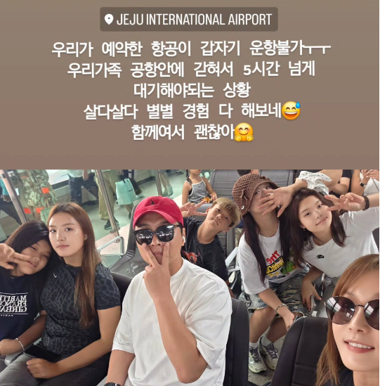 전축구선수이동국가족이제주도가족여행중뜻밖의변수에마주했다고전했다.이동국의아내이수진은30일자신의SNS를통해“우리가예약한항공이갑자기운항불가.우리가족공항안에갇혀서5시간넘게대기해야되는상황”이라는글과함께사진여러장을게재했다.공개된사진에는제주공항에서이동국과이수진부부,그리고다섯남매재시·재아·설아·수아·시안이함께대기중인모습이담겼다.전축구선수이동국가족이제주도가족여행중뜻밖의변수에마주했다고전했다.사진=이수진SNS아이들이공항바닥에자리를펴고앉아있는모습부터가족전체가담긴단체사진까지,갑작스러운상황속에서도밝은표정이눈에띄었다.이수진은“살다살다별별경험다해보네”라며웃픈심정을전하면서도“그래도함께여서괜찮아”라는말로가족에대한따뜻한애정을드러냈다.한편이수진은1997년미스코리아하와이미(美)출신으로,2005년이동국과결혼했다.두사람은KBS2‘슈퍼맨이돌아왔다’를통해다섯남매와함께하는일상을공개해많은사랑을받았다.[김승혜MK스포츠기자][ⓒMK스포츠,무단전재및재배포금지]Copyright©MK스포츠.무단전재및재배포금지.