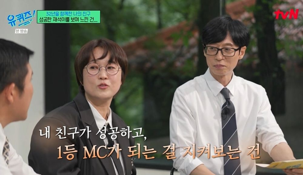[TV리포트=남금주기자]송은이가절친인유재석을향한깊은애정을드러냈다.30일방송된tvN'유퀴즈온더블럭'(이하'유퀴즈')에서는송은이가게스트로출연했다.이날송은이는절친인유재석에대해"그때'쟤가성공할까?'는알수없었지만,애가마음이좋다는기대가있지않냐.그런기대로친구로오래있었던것같다"라고밝혔다.조세호가"누구보다막역한사이아니냐.유일하게편하게메뚜기라고부르는분이송은이,김숙씨아니냐"라고하자유재석은"요즘엔녹화하다가만나는시민분들도그렇게부르는분이별로없다"라고밝혔다.송은이는"평소엔메뚜기라고하는데,부탁할거있을땐'뚝사마'라고한다"라고고백해웃음을자아냈다.이에유재석은"메시지오면용건을안다.'메뚜기'라고오면그냥안부고,'뚝사마'라고오면(부탁이다)"라며웃음을참지못했다.서로에게든든한동료인송은이와유재석.유재석은"늘상서로가격려하고응원한다.서로가잘되면너무좋다"라고전했다.송은이는"사회생활하면서그런친구가생각보다흔치않은것같다"라며"저희는친구이지않냐.어느날막잘되더니대상을받더라.그걸지켜보는기분은되게이상하다.내친구가1등MC가되는걸지켜보는건행복한기분"이라며유재석을향한깊은애정을드러냈다.인터뷰에서송은이는"과거엔재석이가뭐할때'은이야,어때?'라고물어보기도했다.잘난맛에알려주기도하고했는데,이젠너무잘하는MC가됐다"라고말문을열었다.송은이는"전저에대한고민없이자신감만으로믿고있다가저의부족한부분들을깨닫는순간현타가왔던것같다.그걸뛰어넘고나서는재석이가잘되는걸보는게너무즐겁고행복했다"라며자신과유재석을되돌아봤다.특히송은이는"전사실영원한메뚜기,은송이면좋겠다.같이놀면너무재미있고,거기에발을잠깐얹었다는것만으로도행복하다"라며"재석이는센스가좋지않냐.제가팟캐스트를시작한다고했을때카메라가지고들어가면'은송아.또뭔데'라면서불편하지않게다해줬다"라면서두사람의우정을언급했다.이어송은이는"아버지가2008년에돌아가셨는데,병실에계실때재석이가병문안을와줬다.'아버지일어나셔야죠'라고응원도해주고.너무고맙고,'우리이만하면되게잘컸다'란생각도든다.신기하다"라며유재석에게고마운마음을전했다.남금주기자[email protected]/사진=tvN'유퀴즈'Copyright©TV리포트.무단전재및재배포금지