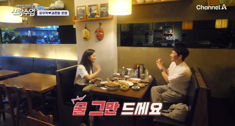 (엑스포츠뉴스김보민기자)장우혁이16세연하오채이와소개팅애프터도중취기가오른모습을보였다.30일방송된채널A'요즘남자라이프-신랑수업'(신랑수업)174회에서는장우혁과이다해의절친한후배배우오채이의소개팅현장이공개됐다.이날오채이와카페에서만난장우혁은대화를나눈뒤"식사라도가능하시면"이라며식사애프터를제안했다.이에오채이는"좋다.배고프다"라며애프터신청을수락했고,그렇게두사람은장우혁의단골가게로이동해만남을이어갔다.장우혁이메뉴주문을하며술을언급하자오채이는"술하셔도괜찮냐"고물었고,이에장우혁이"괜찮다.차두고와서"라고하자그는"비도오니까한잔가볍게"라고호응했다.그렇게식사를이어가던중,장우혁은잔을부딪친뒤"저는벌써기분이너무좋다","이러고간다"면서기분이좋아진모습을보였다.이런장우혁의취기가오른듯한모습에스튜디오에있던이승철은"술도약간못먹는척하고,네가언제그러냐.다먹고가지"라고말하며웃음을터트렸다.그런가하면해당소개팅의주선자인이다해는"여기까지보면서저도잘모르겠다"며오채이의마음에의문을자아냈다.이어"예의인건,첫인상이좋았던건지"라며"워낙예의가바르기는해서상대방을어색하게만드는성격은아니다"라고덧붙였다.그런가하면장우혁은"남자친구말고,채이님이생각하는남편의조건이있냐며돈,명예,키등에서우선으로여기는게무엇인지궁금해했다.오채이는"그사람의인성,긍정적인사람있지않냐"면서"부부가되면여러가지역경과고난이많을텐데,마냥행복하지만은않을거라생각한다.그럴때긍정적으로길잡이를해줄수있는"이라고전했다.하지만이런진지한답변에장우혁은말꼬리를물며장난을이어갔고,이를지켜보던심진화는"너무마음에들었던거다.선을넘고있다"며과한행동을지적했다.이어오채이도"술그만드셔라"라고말했고,이후장우혁이오채이에게연락처를받을수있는지묻는모습이포착돼눈길을끌었다.사진=채널A방송화면김보민기자[email protected]©엑스포츠뉴스.무단전재및재배포금지.