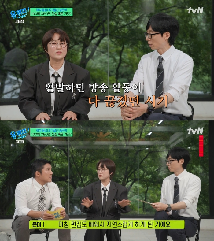 ‘유퀴즈온더블럭’.사진ItvN‘유퀴즈온더블럭’방송캡처코미디언송은이가회사를설립하게된계기를밝혔다.30일방송된tvN‘유퀴즈온더블럭’에는송은이가게스트로출연했다.이날송은이는2015년팟캐스트를시작으로컨텐츠랩비보를설립했다고밝혔다.당시송은이는활발하던방송활동이다끊겨회사를설립하게됐다고.송은이는“갑자기백수가됐는데백수가된걸1년있다가알았다.우리는일이많을때도,적을때도있지않냐.개편의흐름을타다가나를불러주겠지했는데1년이지났더라”라고말했다.이어“내가빨리접하게된게뉴미디어고마침편집도배우고있어서자연스럽게하게됐다”고했다.이에유재석은“초창기에는송은이가촬영,편집등을다하다보니까당시에연락하면‘뭐배우고있다’라고했다”고증언했다.한편‘유퀴즈온더블럭’은매주수요일오후8시45분방송된다.[이세빈스타투데이객원기자]Copyright©스타투데이.무단전재,재배포및AI학습이용금지
