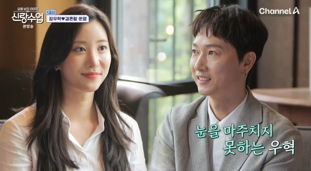 [TV리포트=한수지기자]'요즘남자라이프신랑수업'장우혁이16살연하배우오채이와소개팅을했다.30일방송된채널A예능프로그램'요즘남자라이프신랑수업'(이하'신랑수업')에서는이다해의소개로소개팅을하게된장우혁의모습이그려졌다.앞서이다해는"저랑굉장히친한사람이생각났다"라며장우혁의소개를주선한것.장우혁은소개팅장소를가던중이다해에게전화를받았다.이다해는"내가처음에가서소개도해주고수다도떨고싶은데,중국에와있어서못갔다.오빠가어리게생겨서잊었는데나이차가좀많이나는것같다.물은엎질러졌으니까알아서잘하겠지.내가아끼는동생이다"라고말했다.소개팅장소에도착한장우혁은흰셔츠에린넨자켓으로깔끔하게차려입은모습으로초조하게소개팅녀를기다렸다.소개팅녀는또렷한이목구비에단아한미모의7년차배우오채이였다.오채이는이다해와11년째알고지내는사이였다.장우혁은눈을제대로마주치지못하고긴장한모습을보였다.장우혁은"집은어디냐?"라고물었고,오채이는"여의도에서부모님과같이살고있다"라고답했다.가족관계까지물어본후장우혁은긴장감에뚝딱였고,침묵의시간이이어지자음료주문에나섰다.앞선통화에서이다해는첫인상이마음에들면같은메뉴를고르라고했다.이에장우혁은주저없이오채이가고른디카페인아메리카노를주문했다.이어장우혁은이다해로부터오채이를소개받던순간을떠올리며"우리가운명적으로만났다"라고고백했다.그러면서그는"숙녀분에게나이를물어보면실례이긴한데그래도제가나이가좀있다보니까"라고물었다.오채이는"94년생개띠다"라고말했다.오채이의나이는31세로장우혁과무려16살차이였다.장우혁은"나이차이가꽤된다.저는47살이다.어떻게생각하시냐?"라고조심스럽게물었고,오채이는"그런데나이보다는사람이더중요한것같다"라고말해장우혁을웃게했다.상기된장우혁은"결혼생각이있냐?"라고질문했고,오채이는"연애만추구하는스타일은아니고,미래를보이는연애를추구하니까결혼생각은항상염두해뒀다"라고밝혔다.이를놓치지않고장우혁은"좋은사람있어야죠.저처럼"이라고플러팅멘트를날렸다.이어장우혁은"신랑수업을하면서결혼생각이더커졌다.그리고희준이도결혼했고,아들,딸이있다.친구들도결혼을해서너무좋아보이더라"라고전했다.또장우혁은긍정적인사람이좋다는오채이의말에"제이야기를듣고오신줄알았다.제가긍정적인사람을좋아한다.친구들이저를장긍정이라고한다"라며적극어필했다.한수지기자[email protected]/사진=채널A'요즘남자라이프신랑수업'Copyright©TV리포트.무단전재및재배포금지