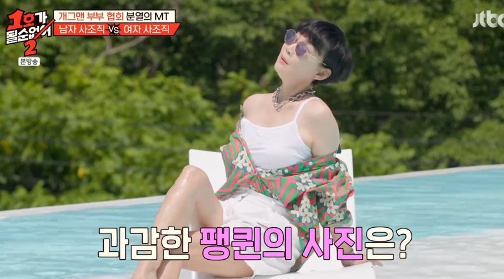 [TV리포트=이혜미기자]개그우먼팽현숙이60세의나이를초월한'귄카'의자태를뽐냈다.30일JTBC'1호가될순없어2'에선개그맨부부협회분열의MT가펼쳐졌다.이날최양락을필두로김학래권재관강재준손민수등이한데모여MT에나선가운데박준형은"휴대폰다끄라.이거끄고우리다같이벗어나자"라고선동(?)한바.이에박준형의아내김지혜가경악했다면임미숙은"여자들이뭘잘못했다고벗어나자고하나"라며황당해했다.권재관은아예휴대폰을내던지는모습을보였다.최양락도나섰다.일찍이MT를계획하고주도한최양락은"오늘은여자얘기아예금지"라며"내앞에서팽현숙의'팽'도꺼내지말라"고강조했다.보다못한팽현숙이"못된인간들"이라며혀를찼을정도.한술더떠박준형이"나는아예총각"이라며너스레를떨면김지혜는"아주신이났다.집에들어오지말고거기서쭉살라"며분노를표출했다.팽현숙,임현숙,김지혜,이은형,임라라,김경아등개그우먼들도여행에나섰다.1980년대무드가가득했던개그맨들의MT와달리개그우먼들이찾은곳은스위밍풀을품은대형리조트다.럭셔리여행을이끈팽현숙의안목에개그우먼들은그의이름을부르며환호했다.기념사진도촬영했다.셔츠를반쯤벗어섹시미를발산한팽현숙에최양락이"왜저러나?"라며거부감을드러낸것과달리출연자들은"모니카벨루치같다""이건화보다""누가환갑으로보나"라며감탄을표했다.이혜미기자[email protected]/사진=1호가될순없어'방송화면캡처Copyright©TV리포트.무단전재및재배포금지