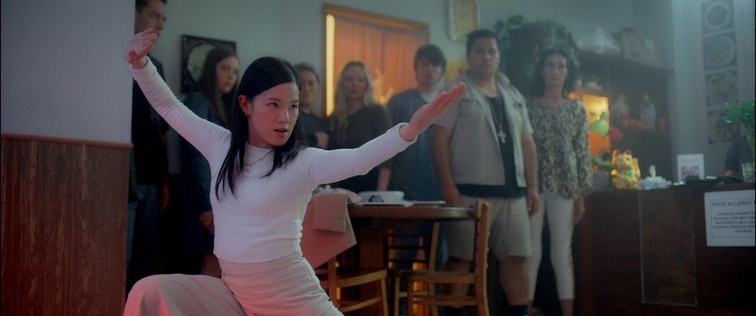 [김성호의씨네만세1121]제29회부천국제판타스틱영화제<결판을냅시다!>[김성호평론가](*이글은영화의스포일러를포함하고있습니다.)입이마르도록칭찬했다.독보적인작품이라고소개했다.독보적이란말은이럴때쓰라고만들어진것이니까.이해,애정,존경이응축돼표출된이한편의영화를그저아무렇게나지나칠수는없다.부천국제영화제제29회부천국제판타스틱영화제엑스라지섹션'XL11'에묶여상영된네편의작품가운데이례적으로박수갈채를받은데는분명한이유가있다.단편이묶여상영되는와중에어느한편이끝났다고박수가쏟아지는일은흔치않다.묶음이모두끝나고나서야몰아서박수를치는것이통례다.그러나언제나예외는있다.XL11세번째작품,<결판을냅시다!>가바로그예외를만들었다.모두네편의단편가운데유일하게물건너온작품이<결판을냅시다!>다.올해엑스라지섹션엔무려987편의해외단편이문을두드렸다는데,살아남은것은이중17편에그쳤다.<결판을냅시다!>가그중하나다.▲결판을냅시다!스틸컷ⓒ부천국제판타스틱영화제이주민정체성살린재기발랄한영화잭운은뉴질랜드오클랜드출신영화인으로,중국계이민자가정에서태어났다.뉴질랜드인구의15%가량을차지하는아시아계이주민,그중에서도가장큰축을이루는중국계로잭운은제정체성을드러내는영상작업을꾸준히이어왔다.5살어린나이에부모를따라말레이시아에서뉴질랜드로이주한잭운은성인이된뒤영상작업을업으로삼고다큐멘터리와뮤직비디오,TV프로그램등에서연출과편집,촬영등을두루맡아왔다.특히중국계이민자의이야기를다룬작품군이그필모그래피의중심을이루는데,꾸준히단편을제작하는와중에제작한음식과여행관련TV프로그램<SikFanLah!>는뉴질랜드중국계이민자를넘어중국본토에서까지상당한화제를모았다.<결판을냅시다!>는10여년간쌓아온잭운의역량을한데모은단편영화다.영화감독을꿈으로가졌으나만드는작품이세계유수영화제의문턱을넘지못하고무명의시간을보내야했던그다.영화보다TV프로그램등에서먼저두각을나타내면서도영화를포기하지못한잭운이그간쌓은기량을그대로쏟아냈음이작품전반에서드러난다.뉴질랜드오클랜드의한중식당이영화가펼쳐지는공간이다.이곳에한남녀가마주앉는다.검은머리를했으나영어가더편한이들은잭운이그렇듯,중국계뉴질랜드인이다.영화는이들이같은자리에배석한이유가데이팅앱덕분이란사실을이내드러낸다.비슷한욕구에비슷한취향,비슷한배경까지,맞지않을이유가없을법한만남이지만이들은시작부터삐걱거린다.▲결판을냅시다!스틸컷ⓒ부천국제판타스틱영화제쿵푸와음식의절묘한만남엘리(브리짓웡분)는윈슨(윌슨츠분)이어딘지고루한사람인듯해마음에들지않는다.윈슨은첫만남부터지각하고도당당하기만한엘리가짜증스럽다.서로의프로필조차어딘지꾸며지고과장된듯한느낌이다.데이팅앱을통해성사된여느만남이그러하듯,잔뜩꾸며진서로의프로필이높여놓은기대만큼현실이영따라주지못해서다.물론현대한국인기준에서라면전혀과장이라고는할수없지만말이다.<결판을냅시다!>가매력적인작품인건흔히있을수있는설정과소재로전혀다른영화를만들어냈다는점에있다.늦은저녁오클랜드중식당에서이뤄진남녀의첫만남자리를한편의무협영화하이라이트처럼다루는건이영화가아니고선어디서도만나기어려운장면이다.엘리와윈슨앞에주문한음식이하나둘놓이고,둘이그에젓가락을가져다대는순간들이마치쿵후고수간의대결처럼긴박하게연출된다.다분히극화된영상과소리는이들이젓가락을들고음식으로가져다대고상대의동작에반응하는매순간을과장하여포착한다.수와수가오가고합이이뤄지며승패가쉬이가려지지않은채로대결이이어지는모습이관객을긴장토록한다.기실그저식사일뿐이다.젓가락질일뿐이다.그러나동양인처럼보이는이라고는이들둘뿐인이색적중국식당에서중국음식을놓고오가는젓가락질과그비범한기싸움이이를그저가벼운식사로놓아두지않는다.처음엔그저연출적장난인줄알았던장면은얼마지나지않아이들이진짜유서깊은무도가문의자제란사실을밝히며다른차원으로넘어간다.젓가락을들고서서로수싸움과기싸움을벌여우위를점하기위해고군분투하던이들이,또그사이로다른자리에서보면전혀눈치챌수없게평상의대화를나누는모습이한차례치열한대결이란사실을보여준다.▲결판을냅시다!스틸컷ⓒ부천국제판타스틱영화제한끼식사가긴장넘치는쿵후대결로처음만난남녀가적당히경계하며서로를알아가는모습위에가문의명예를걸고한판대결하는무도인의싸움을덮어씌우는연출은참신하다.소리와동작을포착해연출하는솜씨가일류무협영화의그것못잖은데,낯선배우들이더욱낯선시공간에서벌이는대결이란점에서다분히이색적이고파격적이다.둘의대결은처음엔가벼운대화로시작해,서로뻗은젓가락이목표를이룰수있도록하는식사를거쳐,이내테이블을무대로두고전력으로겨루는쿵후시합이된다.그리고마침내중식당전체를뒤흔드는한판대결이펼쳐진다.중식당에서식사하던다른고객들은물론,점원들까지도이들의대결을손에땀을쥐고지켜보고,마침내응원하고환호하게되는모습이놀랍다.대결을넘