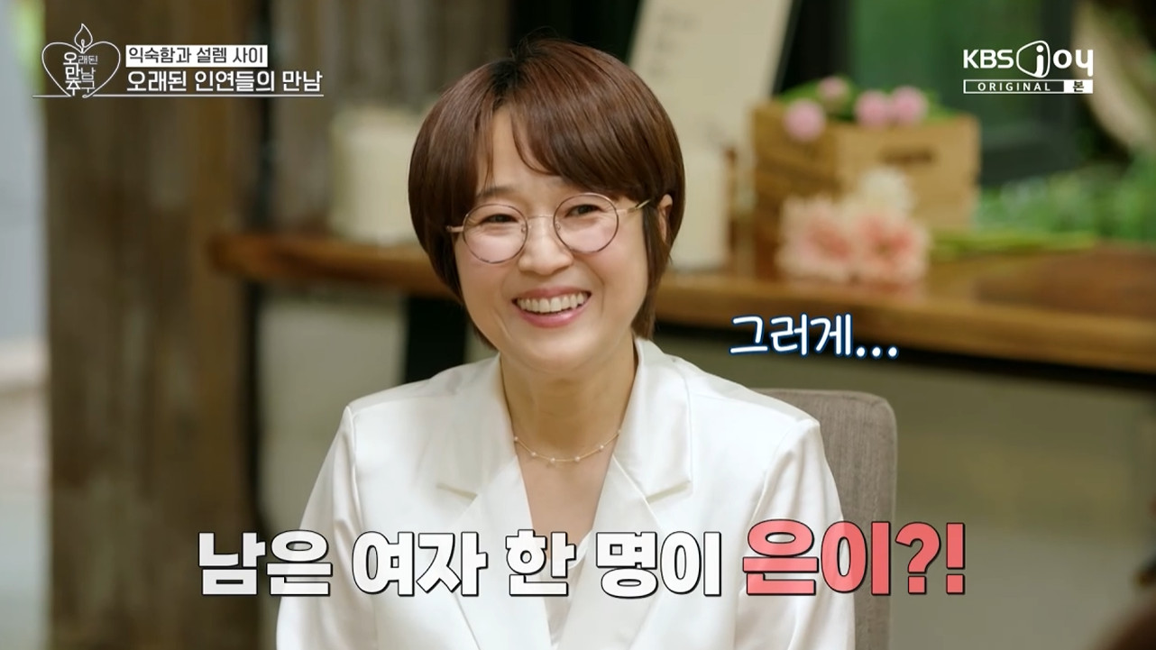 (엑스포츠뉴스이예진기자)'오만추'기획자송은이가출연진으로모습을드러내며새로운사랑을찾기위해나섰다.28일방송된KBSJoy·KBS2TV·GTV'오래된만남추구'(이하'오만추')에서는3기출연자들의첫만남이그려졌다.이날'오만추'기획자송은이의등장에출연진들은모두기립한모습을보여웃음을자아냈다.송은이는"다들왜이렇게깍듯하게인사해"라며당황했고,장소연은"촬영하러오신것같다"라며출연진임을언급했다.솔비는"여성한분이언니였던거냐"라며반가워했고,송은이는"그러게"라고말했다.연하얘기를한창하고있던중송은이가등장해출연진들은당황했고,송은이는"분위기는내가오면안되는자리인가?"라고이야기했다.이켠은"이켠연하얘기를한창재밌게하고있어서"라며너스레를떨었고,송은이는"내가너무못올때온느낌인데"라고이야기했다.이규한은송은이와20년넘은인연을언급하며"시트콤을같이했었다"라고말했다.이어"오래된인연이나온다고했는데누나였구나.여기서재밌게하면해외보내준대요.누나모시고해외갈래요"라고말해웃음을자아냈다.송은이는"모시고?"라며당황했고,솔비는"여기1등도뽑아요?"라고물었다.이에황보는"야,있는걸로쳐"라고받아쳐웃음을더했다.송은이는"내가안보는사이에프로그램이변질됐어요?"라고말했고,이규한은"마지막에시청자투표를받는다"며농담했다.송은이는"내가기획자인데나도모르는.뭔가가바뀌었네?"라며웃었다.사진=KBSJoy방송화면이예진기자[email protected]©엑스포츠뉴스.무단전재및재배포금지.