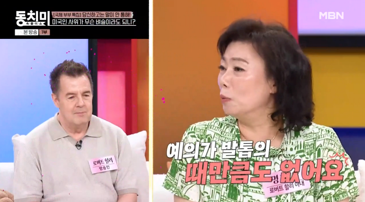 명현숙이로버트할리의태도에분노했다.iMBC연예뉴스사진iMBC연예뉴스사진iMBC연예뉴스사진iMBC연예뉴스사진26일방송된MBN'속풀이쇼동치미'는국제부부특집으로'당신하고는말이안통해'라는주제로이야기를나눴다.이날로버트할리의아내명현숙은"말이잘통해문화차이가없을줄알았는데결혼을해보니확드러나더라.점심,저녁은한식을먹는데아침은꼭양식을먹어야해베이컨을구워야하고프렌치토스트한상을차려야한다"고털어놨다.명현숙은"패턴이조금다르니이해하지만예의가발톱의때만큼도없다.첫애를낳았을때뒤통수가뾰족해어머니가안예쁘다고머리양쪽으로책을놓고못움직이게했다.그런데그걸보고'장모님왜애머리를이렇게해놓냐.납작해지면책임질거냐'며소리치더라.엄마가얼어서한마디도못해화가났다"고했다.이어그는"크리스마스가미국에서는가장큰명절중하난데친정엄마도사위비위를맞추려고아이들내복을사트리밑에놔두셨다.그런데아이가장난치다가옷에음식을쏟아엄마가선물로준비한옷을뜯어입혔는데남편이'이거누가그랬어?미국전통으론아침에트리앞에앉아멋지게풀어야하는데왜뜯으셨냐'고화를내더라.그땐결혼한지좀지난후로한국에살면한국전통을따르라고했다.바로깨갱하더라"고덧붙였다.한편MBN'속풀이쇼동치미'는매주토요일오후11시방송된다.iMBC연예백아영|사진출처MBNCopyright©MBC연예.무단전재및재배포,AI학습금지.