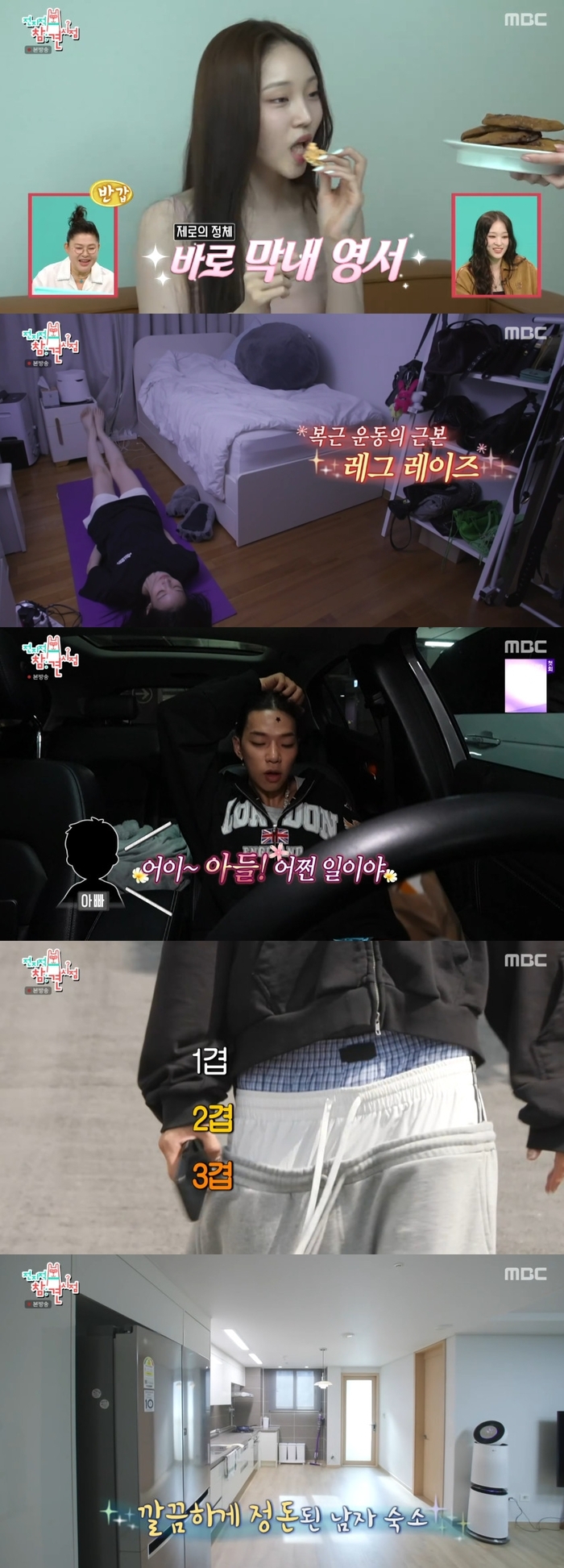 ‘전참시’.사진|MBC올데이프로젝트가숙소를공개했다.26일오후방송된MBC예능프로그램‘전지적참견시점’(이하‘전참시’)에는데뷔16일차를맞이한올데이프로젝트가첫번째참견시점주인공으로모습을보였다.이날방송에서올데프와함께한지7개월됐다는매니저는“무대에서는세보이지만무대아래에서는귀여운예대전공생들이다”라고제보했다.애니는‘전참시’를본적이있냐는질문에“네자주봐요.아빠방에서자주나오고있어요”라고답했다.이를들은유병재는“아빠방이있구나”라며놀랐다.또부모님반응은어떠냐는질문에타잔이“아빠가회사그만둔다고까지하셨다”라고하자애니는“아빠가그만둔다고하신것까지는모르겠지만집에서TV보는시간이많아지셨어요.개를두마리키우는데저의직캠을개들이보고있는영상을찍어서보내주셨어요”라고답했다.이후여성멤버3인이사는숙소가최초공개됐다.넓직한거실과패션아이템이가득한집을보여준애니는아침에일어나자마자요가매트를깔고스트레칭에나섰다.아침마다복근운동500개를꼭한다는애니는“제가먹는걸너무좋아하는데이상하게배만나오더라고요?올챙이배에요”라며운동하는이유를밝혔다.애니는화장대에앉아10분만에화장을척척해내는모습을보이기도했다.또화장하면서셰딩가루를바닥에털어버리는털털한모습을보이기도.베일리는아침부터베이킹에나섰다.두살때부터춤을췄다는베일리는베이킹을하는와중에도춤을췄다.베일리의초코쿠키를맛보던애니는정말배고프다며냉장고에서피클을꺼내먹었다.한편남성멤버타잔은아침9시부터차에서음악을크게틀고노래를불렀다.차에서영감이가장많이떠오른다는타잔은차에이불,옷,간식,시계등생활용품을가득채웠다.차가흔들릴정도로차안에서흥을분출한타잔은햄버거를포장한후지하주차장에서베일리에게햄버거를전해줬다.타잔은숙소에가지않고차안에서팬케이크와해시브라운을빠르게해치웠다.이후남성멤버타잔,우찬의숙소가공개됐다.애니역시“남자숙소는처음본다”며깔끔한방을보고놀랐다.우찬과간단한인사를마친타잔은짧고강렬한운동을선보였다.멤버다섯명은음악방송스케줄을위해이른새벽부터단장에나섰다.베일리는수많은렌즈중하나를골라타잔의눈에직접끼워줬다.매니저는“이게혼성만의장점”이라며“타잔이는렌즈를혼자껴본적이없는데베일리가렌즈를잘끼워준다.서로도와준다”고설명했다.우찬역시애니를찾으며렌즈를끼워달라고했다.애니가렌즈를꾹꾹누르자우찬은“왜그걸터치해요.누나!이러면세균들어가요!나렌즈안껴!”라고어리광부렸다.이에애니는“아니젠틀하게탭한거야!15분전에손닦았어!실명되면제가책임질게요”라며억울해했다.이후올데프는음악방송무대를완벽하게끝마쳤다.‘전참시’.사진|MBC두번째참견시점주인공으로는코요태가모습을보였다.2년차매니저는“종민이형이방송으로보면바보이미지인데실제로얘기해보면아는게많다”고소개했다.매니저는“실제로는종민이형이맏형이고빽가형이누나보다생일이빨라서누나가막내예요.그런데엄마가육아난도높은아들두명을키우는느낌이에요”라고고발했다.신지는가요계군기반장소문이어떻게만들어진거냐는질문에“다김종민씨가만든거죠.조금만뭘해도‘너신지한테이른다?’라고하니까신지라는사람이무서운사람이라고알고있는거죠”라고했다.빽가는“‘아육대’에서NS윤지를만나서장난으로‘너신지한테인사안했니?’라고물었는데NS윤지가조금후에울면서신지한테가서‘언니죄송해요.인사한줄알았는데’라고했어요”라고말해웃음을자아냈다.신곡‘콜미’뮤직비디오촬영을위해뭉친코요태는스케줄장소로향하는차에서촬영순서를맞춰봤다.또다른매니저는“실제로는종민이형이맏형이고빽가형이누나보다생일이빨라서누나가막내예요.그런데엄마가육아난도높은아들두명을키우는느낌이에요”라고고발했다.뮤직비디오촬영내내신지는“집중!”을외치며종민과빽가를단속시키며촬영을이어갔다.식사중빽가는“나는고마웠던게형이랑신지랑식단조절한게너무고마웠다”며고마운마음을전했다.이를듣던신지는“미안한데나는식단조절안했어.그냥마음고생...”이라며문원논란을간접언급했다.이에김종민은“그게제일큰다이어트야”라며위로했고빽가는“밥맛있다”라며말을돌렸다.다른날코요태는축제에서수많은히트송을부르며그들만의저력을보여줬다.‘전참시’는매주토요일오후11시10분MBC에서방송한다.[서예지스타투데이객원기자]Copyright©스타투데이.무단전재,재배포및AI학습이용금지