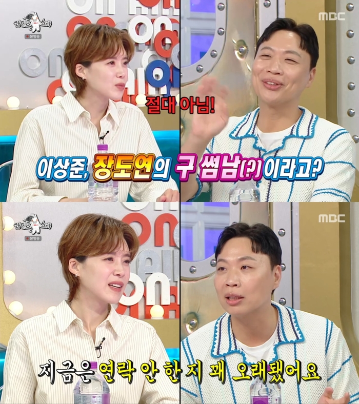 ‘라디오스타’.사진IMBC‘라디오스타’방송캡처코미디언이상준이장도연과의썸을부인했다.23일방송된MBC‘라디오스타’에는임원희,이기찬,이상준,윤형빈이게스트로출연했다.이날이상준은“장도연이구썸녀냐”는질문에“절대아니다”라고손사래쳤다.장도연역시“전혀아니다”라고부인했다.이상준은“연인콘셉트로코너를같이하면썸이라고기사가나더라.장도연과코너를한적있어서그런기사가몇개있다”고말했다.이어“가끔장난식으로연락하는사이였는데지금은연락을안한지오래됐다”고덧붙였다.이상준은“내가자격지심이있어서지상파에서1년이상MC를한사람한테는연락안한다.유세윤한테도‘코미디빅리그’할때나연락했다.괜히잘나가는사람들한테빌붙는느낌들까봐”라고해웃음을자아냈다.한편‘라디오스타’는매주수요일오후10시30분방송된다.[이세빈스타투데이객원기자]Copyright©스타투데이.무단전재,재배포및AI학습이용금지