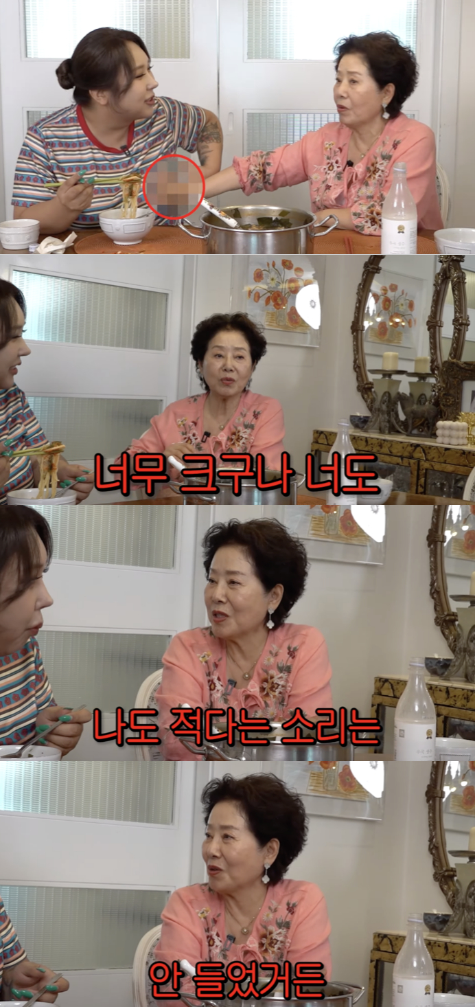 [스타뉴스|정은채기자]선우용여,풍자가슴만지고깜짝.."너무커,나도적단소린안들어"[순풍]배우선우용여가방송인풍자와의토크도중돌발행동으로웃음을자아냈다.23일유튜브채널*'순풍선우용여'*에는'풍자휘어잡는81세선우용여의미친카리스마(+79금잔소리,낙지라면먹방)'이라는제목의영상이게재됐다.영상속에서풍자는선우용여집에서그가직접끓여준낙지라면을먹으며"저는살은쪘지만맛이없는걸로배채우는걸너무싫어한다"고털어놨다.선우용여,풍자가슴만지고깜짝.."너무커,나도적단소린안들어"[순풍]이를듣던선우용여는풍자의팔뚝을만지다가실수로풍자의가슴을만지게됐고,뒤늦게이사실을깨닫고서는"너무크구나,너도.나도적다는소리는안들었다"라며흐뭇한미소를지어웃음을자아냈다.이어그는"없는것보다있는게나아"라고덧붙였고,풍자는"있고디스크걸리는게나을것같다"라고받아치며수위높은농담으로분위기를유쾌하게만들었다.정은채기자[email protected]©스타뉴스&starnewskorea.com,무단전재및재배포금지