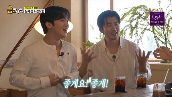 '틈만나면,'22일방송SBS'틈만나면,'캡처SBS'틈만나면,'캡처(서울=뉴스1)박하나기자='틈만나면,'윤계상이술을마시면달라지는김요한의반전면모를전했다.22일오후에방송된SBS예능프로그램'틈만나면,'에서는오는25일방송될SBS새금토드라마'트라이:우리는기적이된다'의주역윤계상,김요한이함께했다.이날사람많은곳에서는땀이흐르는극내향인의사연이소개된가운데유재석,윤계상,김요한역시내향인이라고입을모았다.유재석은내향인을좋아한다며"내적친밀감이생긴다"라고하기도.윤계상이"저도너무심한데,(김요한이)완전심하다"라며"근데술먹으면돌변하는스타일이다"라고폭로해김요한을당황하게했다.이에윤계상은"좋게,편하게,밝아진다"라며김요한이술을마시면밝아진다고덧붙여웃음을자아냈다.한편SBS'틈만나면,'은일상속마주하는잠깐의틈새시간사이에행운을선물하는'틈새공략'버라이어티프로그램으로매주화요일오후9시에방송된다[email protected]©뉴스1.Allrightsreserved.무단전재및재배포,AI학습이용금지.