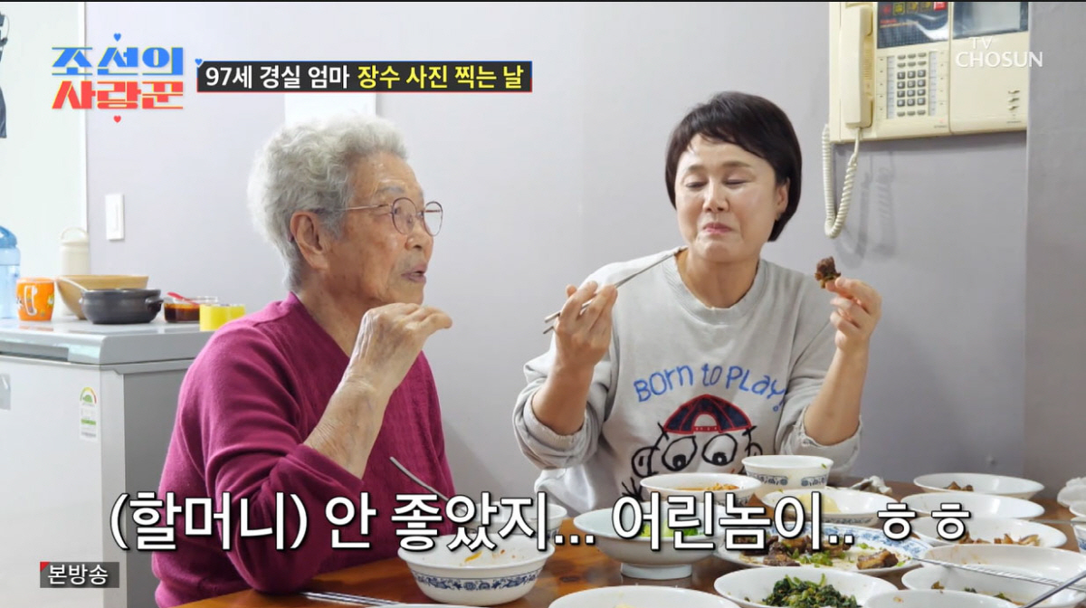 [스포츠조선닷컴김준석기자]이경실의97세어머니가손주손보승의혼전임신을언급했다.21일방송된TVCHOSUN'조선의사랑꾼'에서97세할머니가'이경실아들'손보승의어린시절을회상하며촌철살인을날렸다.이날손보승은군입대전어머니이경실에게"뭐하고싶은거없냐"라고물었고,이경실은"가족사진찍을까"라고이야기했다.이경실은"저희들이볼때는정정하시지만어르신들은언제어떻게될지도모르고.늘보고싶어하는손주들과함께가서가족사진을찍으려했다"라고이야기했다.군산으로향하던중"우리끼리가족사진찍은적이없다.나도찍어보고싶었는데"라며가족사진에대한기대감을보였다.이경실은제작진에게"아버지가교도관으로50세에은퇴를하셨다.그때가6학년이었는데중학교가서집이어려운걸느꼈다.수업료를못내서선생님에게구박을받았고,그래서그게엄청스트레스였나보다.그래서뇌막염에걸렸었다.또아버지가뇌경색으로두번쓰러지셨고,집에서병원냄새가항상났었다"라고이야기했다.이어이경실은"군산유명빵집은그때가난해서못먹었다.그래서그게한이됐나보다.그래서요즘가면엄청사서온다"라고이야기했다.빵집에도착한이경실은쟁반에빵을싹쓸이할기세로담기시작해웃음을자아냈다.드디어증조할머니의집에도착했고"저는97세다"라고소개를해모두를놀라게만들었다.과일바구니를선물한손주보승이를보고"키워준보람이있다"라고할머니는뿌듯해했다.특히할머니는손주를위해밤11시에생선을손질했음을알리며"그거끓이는데죽을뻔했다"라고말했고,이경실은"엄마그렇지않아도얼마안남았는데"라고매운맛농담을해웃음을자아냈다.또이경실은"보승이는3살때부터파김치를엄청잘먹었다"며추억을소환했다.이에손보승은"3살은아닐거다"라며부정했지만,97세할머니가"3살이었다"면서쐐기를박았다.또이경실은"엄마가너희를쫓아다니면서밥먹여본적이없다"고회상했다.그러자할머니는"네가밥먹여봤냐,언제?내가다먹였지"라며촌철살인의한마디로웃음을자아냈다.이에이경실은"같이다먹였잖아"라며꼬리를내렸다.이어손보승은"할머니,그러면나태어났을때바로키운거야?"라고묻자,할머니는"그럼,너희들은뱃속에서나온그날저녁부터나하고잤다.너는100일지날때까지저녁에안자고낮에잤다"고생생하게기억을떠올렸다.이에'육아경험자'손보승이"할머니,(아기들은)100일지날때까지다저녁에안잔다니까?"라면서이의를제기했다.하지만'육아만렙'할머니는"이놈자식이무슨그런소리를...그래서할머니가갑상선걸렸잖아,잠도못자고...혈압도생기고!"라고호통쳤다.손보승은"그러면안자고뭐하는데새벽에?"라고투덜거렸고,할머니는"울고,막우유만달라하고!오줌싸고그냥..."이라며리얼한답을내놨다.특히할머니는"그때가서육아를하다가내가90살에여기로왔다"라고이야기했고,이경실은"아이들한테내가돈은벌었지만키운건할머니다.할머니에게잘해야한다고이야기를했었다.어머니에게진짜고맙다"라며울컥하는모습을보였다.이경실은"지나간거지만,보승이가아기가졌다고했을때엄마기분이어땠어?"라고엄마에게아들의혼전임신에대해질문했다.그러자할머니는"안좋았지...어린놈이..."라고솔직하게대답해웃음을자아냈다.할머니는"보승이가진짜미웠다.자기가할일이아직많은데노래도잘하고연기도잘해서칭찬받을수있는데어린나이에연애해서임신했다고하니까황당했다"라고이야기했다.손보승은"할머니한테갑자기전화와서…'보승아,이제야엄마도일좀하고할머니도살만한데,네가그래야쓰겠냐?이제엄마가다시일하는데…'라고하시더라"고이경실과절연했을당시할머니에게걸려온'웃픈'통화내용을담담히전했다.식사를마친이경실은어머니에게"오늘가족사진을찍자.그리고엄마찍어놓은장수사진이오래되서그거를다시찍자"라고이야기했다[email protected]©스포츠조선.무단전재및재배포금지.