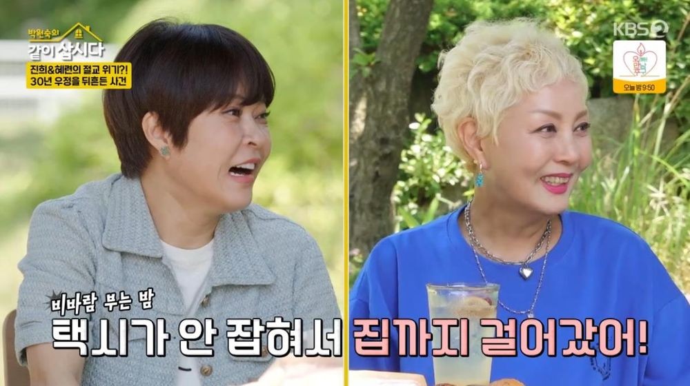 [TV리포트=한수지기자]개그우먼조혜련이과거홍진희와절교했던이유를털어놓았다.21일방송된KBS2TV예능프로그램'박원숙의같이삽시다'에는게스트로조혜련이출연했다.이날박원숙은30년지기절친사이인조혜련과홍진희를향해"30년동안지내면서화나고슬픈일은없었냐?"라고물었다.이에조혜련이"그거털고갑시다"라면서이야기를시작했다.앞서두사람은예능프로그램'아이콘텍트'에출연해절교한적이있다고밝힌바있다.조혜련은"어느날(홍진희와)연락이됐는데,드라마에들어가게됐다고대본량이장난이아니라더라.내가'언니를도와줘야겠다'싶어집으로갔다"라고말했다.그러자홍진희가발끈하며"이것부터잘못됐다.(조혜련이)'언니.나파주에갈일이있다.간김에언니보러갈게'해서내가'나내일녹화라,대본을외워야돼'라고하니'언니그러면내가도와줄게'이러고왔다"라고설명했다.조혜련은"여기에서또고칠게있다.파주에갈일이있어서가아니라내가파주에살았다.무슨얘기냐"라고말하자,홍진희는"그랬다.그랬다.오케이.쏘리"라며사과했다.이를듣던윤다훈은"화해가안된것같다"라고꼬집어웃음을자아냈다.이어조혜련은"그런데그날비가엄청들이치면서바람이많이불었다.밤에내가택시를타고이언니집으로갔다"라고밝혔다.이에홍진희는"낮이다"라고정정하며"낮에매니저가우리집에내려주고집에갔다.말을똑바로해라"라며조혜련을노려봤다.조혜련도지지않고"치겠다.눈을약하게떠라"라며투닥였다.결국조혜련은"정리를하겠다.나는파주살았고낮에갔다.대본을보다보니저녁이됐다.바람이엄청불었다"라고말했다.홍진희는"(조혜련이)'언니나갈게나좀태워다줄수있어?'그래서'나내일녹화고대본외워야한다.너택시타고가'라고했더니안바래다줘서조혜련이기분이안좋았다.그리고몇년동안연락이없었다"라며당시를회상했다.이에조혜련이"왜냐하면택시가안잡혀서걸어갔다.그먼길,집까지울면서걸어갔다.걸어가느라30분정도걸렸다"라며연락을끊은이유를전했다.홍진희는"얘네집이공장도있고무서웠다.40분정도걸렸을거다"라고부연했다.조혜련은"그리고그생각을했다.(내가)홍진희언니를위해서간거였다.내일이아니었지않냐,어떻게언니는'나내일힘들수있으니까택시타고가'라고할수있지?하고마음의문을닫았다.나도신기하다.내가호탕해보이지만아주속에(남았다)"라며섭섭했던마음을밝혔다.이를듣던윤다훈은"나같으면차키를줬을것"이라고말했고,혜은이는"나같으면혜련이를태워줬을것"이라며조혜련을옹호했다.반면박원숙은"홍진희입장에서는내일녹화라부담감이있었을것"이라며홍진희를감쌌다.조혜련은홍진희에게"내가전화를해서택시안잡힌다고했으면나왔어?안나왔어?"라고재차물었고,홍진희는"택시잡아준다고했을것"이라며"당시준주인공이었다.대사가많아너무많아서스트레스가심했다"라고토로했다.두사람의갈등은이것이끝이아니었다.조혜련은홍진희와출연한예능'아이콘텐트'를언급했다.홍진희는"내가혜련이얘기를했다.나는혜련이가왜연락을안하는지몰랐다.바쁜거아니까나도자주연락하는스타일이아니다.작가에게혜련이가몇년째연락을안한다고얘기를하니,작가가조혜련과인터뷰를했다.(혜련이연락을안한)이유를알려주지않았다.녹화에서풀라고했다"라고설명했다.조혜련은"(녹화마지막에홍진희가)콜택시를부르지그랬냐고하더라.거기서끝이났다.깔깔거리면서웃었다.너무웃기더라"라고화해하게된이유를밝혔다.박원숙은"방송후여론은어땠냐?"라고물었고,두사람은"둘다똑같다고하더라"라고밝혀폭소를안겼다.한수지기자[email protected]/사진=KBS2TV'박원숙의같이삽시다'Copyright©TV리포트.무단전재및재배포금지