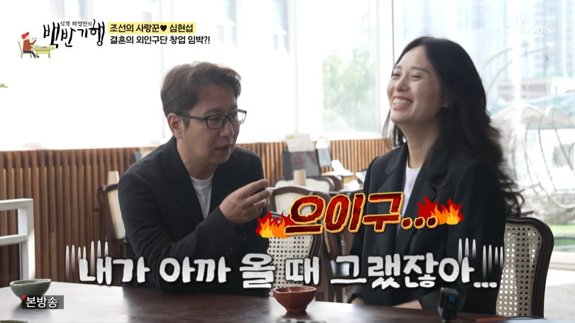 TV조선‘식객허영만의백반기행’캡처TV조선‘식객허영만의백반기행’캡처[뉴스엔장예솔기자]개그맨심현섭이대형사고를쳤다.7월20일방송된TV조선'식객허영만의백반기행'에서는심현섭,정영림부부가출연해경상남도양산으로밥상기행을떠났다.심현섭은103번의소개팅끝지난4월11살연하영어강사정영림과결혼하며노총각딱지를뗐다.허영만은"두분이결혼정보회사하면딱좋겠다.'저렇게늦어도갈수있구나'희망을줬다"고사업을제안,심현섭은"그러면결혼정보회사이름을'결혼의외인구단'이라고해도되겠냐"며영화'공포의외인구단'주제가를불렀다.허영만은당황한듯말을잇지못하더니곧"그건이현세작품이다"고지적했다.대형실수를저지른심현섭은"선생님작품과헷갈렸다.이건엄청난결례"라고고개를숙이며"저어렸을때는선생님이영웅이었다"고고백해웃음을자아냈다.뉴스엔장예솔imyesol@기사제보및보도자료[email protected]ⓒ뉴스엔.무단전재&재배포금지Copyright©뉴스엔.무단전재및재배포금지.