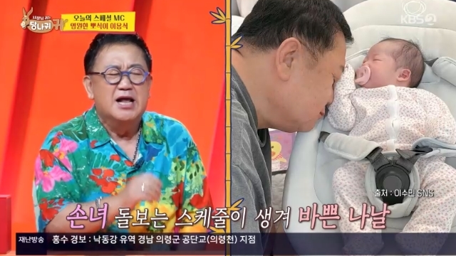 KBS2TV‘사장님귀는당나귀귀’캡처KBS2TV‘사장님귀는당나귀귀’캡처[뉴스엔서유나기자]방송인이용식이손녀사랑을드러냈다.7월20일방송된KBS2TV예능'사장님귀는당나귀귀'(이하'사당귀')315회에서는스페셜MC로이용식이출격했다.이날이용식은전성기시절보다요즘이더바쁘다며"갑자기저한테축복된선물이와서엄청바쁘다.손녀가태어나서"라고자랑했다.이용식은"오늘이손녀가태어난딱50일째되는날"이라며"기저귀갈아주느라바빠,분유타서입에꽂아주느라바쁘다.일끝나면무조건집으로가서손주를안는다"고밝혔다.박명수가"결혼반대하지않았냐"고하자이용식은멋쩍어하며"결혼좀반대했다.뉘우치면서살고있다"고말했다.한편이용식딸이수민은아버지의반대를극복하고트로트가수원혁과결혼해지난5월딸이엘양을품에안았다.뉴스엔서유나stranger77@기사제보및보도자료[email protected]ⓒ뉴스엔.무단전재&재배포금지Copyright©뉴스엔.무단전재및재배포금지.
