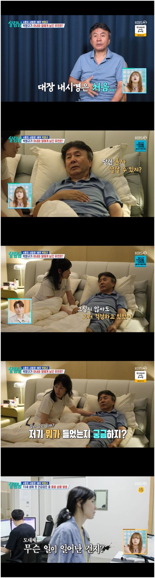 [OSEN=오세진기자]'살림남2'박영규가건강검진을앞두고심란한마음을보였다.19일방영된KBS2TV예능'살림남2'에서는73년만에처음으로건강검진에임하는박영규의모습이그려졌다.올해나이73세,그는국가건강검진까지받지않는사람이었다.오히려병명을알고앓느니모르고죽겠다는주의였다.그런그의마음을돌려놓은건25살연하의아내와손녀뻘에가까운,사랑하는의붓딸덕분이었다.아내는“아무래도남편이걱정이된다.연세가있으시니.본인의의지와상관없이생길수있는질환이나병이발견되지않을까싶다”라며걱정스러워했다.박영규는“건강검진하다가복병을만나면어떨까,나도나지만,힘든걸아내가알게된다고생각하니까상상하기가하기싫다”라며두려워했다.검사전날,박영규는침대에눕더니아내를불렀다.박영규는“여보,나없어도당신혼자살수있지?당신하고딸둘이서어떻게사나”라는말로아내를놀라게했다.이어박영규는“저기금고있지.뭐가들었는지궁금하지?”라면서“번호하고여러가지서류나등기,다저안에있어”라고말해마치유언같은말을남겨모두를놀라게했다./[email protected][사진]KBS2TV예능'살림남2'방송화면캡처Copyright©OSEN.무단전재및재배포금지.