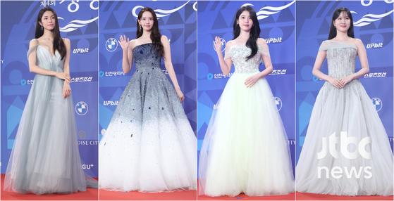 여배들이각자의아름다움으로레드카펫을화려하게수놓았다.'제4회청룡시리즈어워즈'레드카펫이18일오후인천파라다이스시티에서화려하게펼쳐졌다.시상식만큼이나눈길을끈것은각양각색드레스로자신만의매력을드러낸여배우들의스타일경쟁이었다.먼저,절제된세련미를앞세운블랙드레스들이강렬한존재감을발휘했다.군더더기없이깔끔한라인의블랙롱드레스를선택한배우들은고혹적인분위기와함께클래식한아름다움을선보였다.노출을최소화하면서도실루엣과포즈만으로시선을사로잡은이들의스타일은한여름밤레드카펫위에서단연돋보였다.우아한신인,이수현청순매력,공승연고혹적인자태,서현진치명적인눈빛,혜리우아혹은섹시,차주영반면,로맨틱하고화사한분위기의드레스들도시선을모았다.화이트,연핑크,실버,민트등파스텔톤의스커트드레스들은마치동화속한장면을연상케했다.반짝이는스톤장식과어깨를살짝드러낸오프숄더디자인이더해져한층더우아하고환상적인분위기를자아냈다.오늘은청순하게,하영청순그자체,윤아순백의요정,아이유러블리한존재감,박은빈한쪽은시크하고도시적인매력,다른한쪽은우아하고몽환적인무드로극명한스타일대비를이룬이번레드카펫.배우들의드레스선택은각자의캐릭터와분위기를완벽히반영하며,팬들과취재진의감탄을자아냈다.박세완엔터뉴스팀기자[email protected]©JTBC.무단전재및재배포금지.