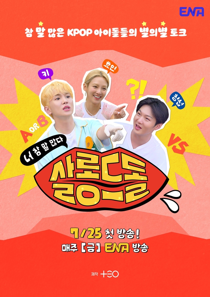 ‘살롱드돌’.사진|ENA군동기찐친키와이창섭의토크쇼‘살롱드돌’이온다.오는25일첫방송되는ENA예능프로그램‘살롱드돌:너참말많다(연출이태경,작가조미현,제작TEO(테오))’는아이돌선후배들이함께모여하찮은논쟁거리를두고격렬한토론을벌이는토크쇼로,그룹샤이니(SHINee)키(Key·김기범)와비투비(BTOB)이창섭이MC로호흡을맞춘다.오는25일대망의첫방송을앞두고많은관심이쏟아지고있는가운데시청자들의기대를더할관전포인트를짚어본다.▲믿고보는제작진의‘살롱드립’세계관확장판‘살롱드돌’은TEO의대표콘텐츠로꾸준한사랑을받고있는‘살롱드립’의세계관확장판이다.다양한스타들의매력을끌어내는‘살롱드립’만의매력을흡수하는한편,일상속하찮은주제를다루는새로운포맷으로확장된재미를기대하게만든다.‘살롱드립’의초창기를이끈이태경PD와조미현작가가다시한번의기투합한신작이라는점에서도기대가남다르다.‘놀라운토요일’부터‘혜미리예채파’,‘Mynameis가브리엘’등다수의인기예능을합작한두사람이이번에는어떤재미를선사할지,과연어떤방식으로아이돌들의토크본능을이끌어낼지이목이집중된다.▲키X이창섭MC조합,군동기찐친케미온다!샤이니키와비투비이창섭,연예계대표예능돌이자실제군동기인두사람의케미역시빼놓을수없는관전포인트중하나다.논리적이고관찰력이뛰어난키는그동안다져온예능내공을바탕으로날카롭고똑부러지는입담을선보일예정.반면이창섭은내향적인성격이지만찐친앞에서는‘아수라캐릭터’로돌변,어디로튈지모르는돌발멘트와리액션으로웃음을자아낸다.두사람의‘티키타카’는야외촬영으로진행되는프리퀄콘텐츠에서부터빛을발한다.여기에소녀시대효연이객원MC로합류해털털하고솔직한입담으로토크에힘을보탤예정이다.이번에공개된포스터에는키,이창섭,효연의모습과함께‘참말많은KPOP아이돌들의별의별토크’라는문구가담겨흥미를자아낸다.쉴틈없는입담으로‘살롱드돌’의본격적인포문을열세사람의호흡에호기심이치솟고있다.▲말많은웃수저아이돌들의토론전쟁‘살롱드돌’은말많은웃수저아이돌들의토론전쟁을담아내며토크예능의새로운장을연다.생활밀착형고민을둘러싼아이돌들의첨예한입장차이와리얼한리액션이웃음포인트로버무려지며시청자들의과몰입을유발할예정이다.질문의스펙트럼도다양하다.‘나랑헤어진후전애인이주변에한말중더열받는상황은?’,‘사람이추할때?’,‘100분짜리영화를한시간짜리요약본으로봤다면?’등각종흥미로운주제들이쏟아지며예측불가한논쟁을이끌어낼전망.쉴틈없이펼쳐지는입담퍼레이드역시또하나의‘밥친구예능’탄생을예고하며본방송을향한기대감을고조시킨다.ENA신규예능‘살롱드돌:너참말많다’는7월25일첫방송을시작으로매주금요일방송된다.[김소연스타투데이기자]Copyright©스타투데이.무단전재,재배포및AI학습이용금지